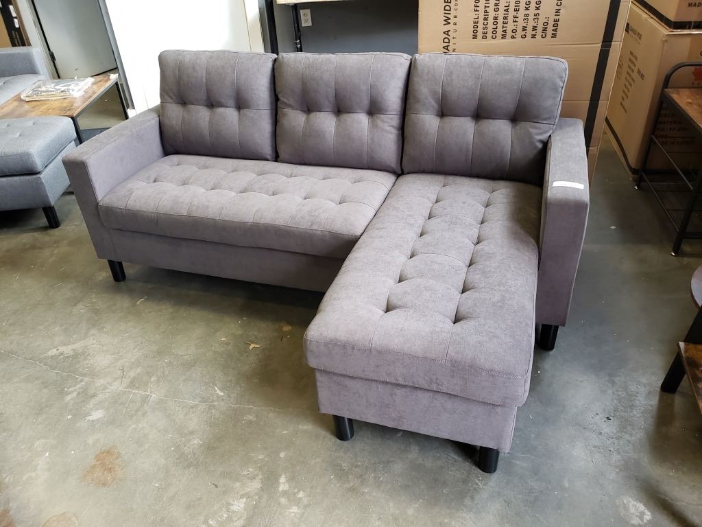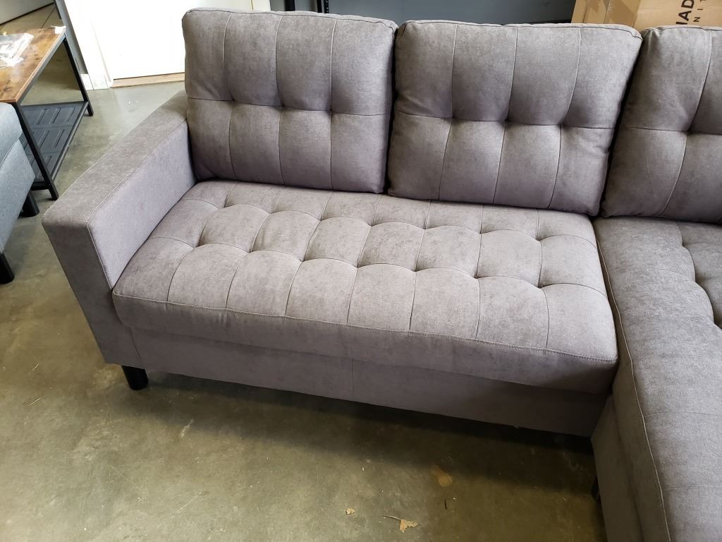 BRAND NEW CHARCOAL TUFTED REVERSIBLE SECTIONAL SOFA - RETAIL $899