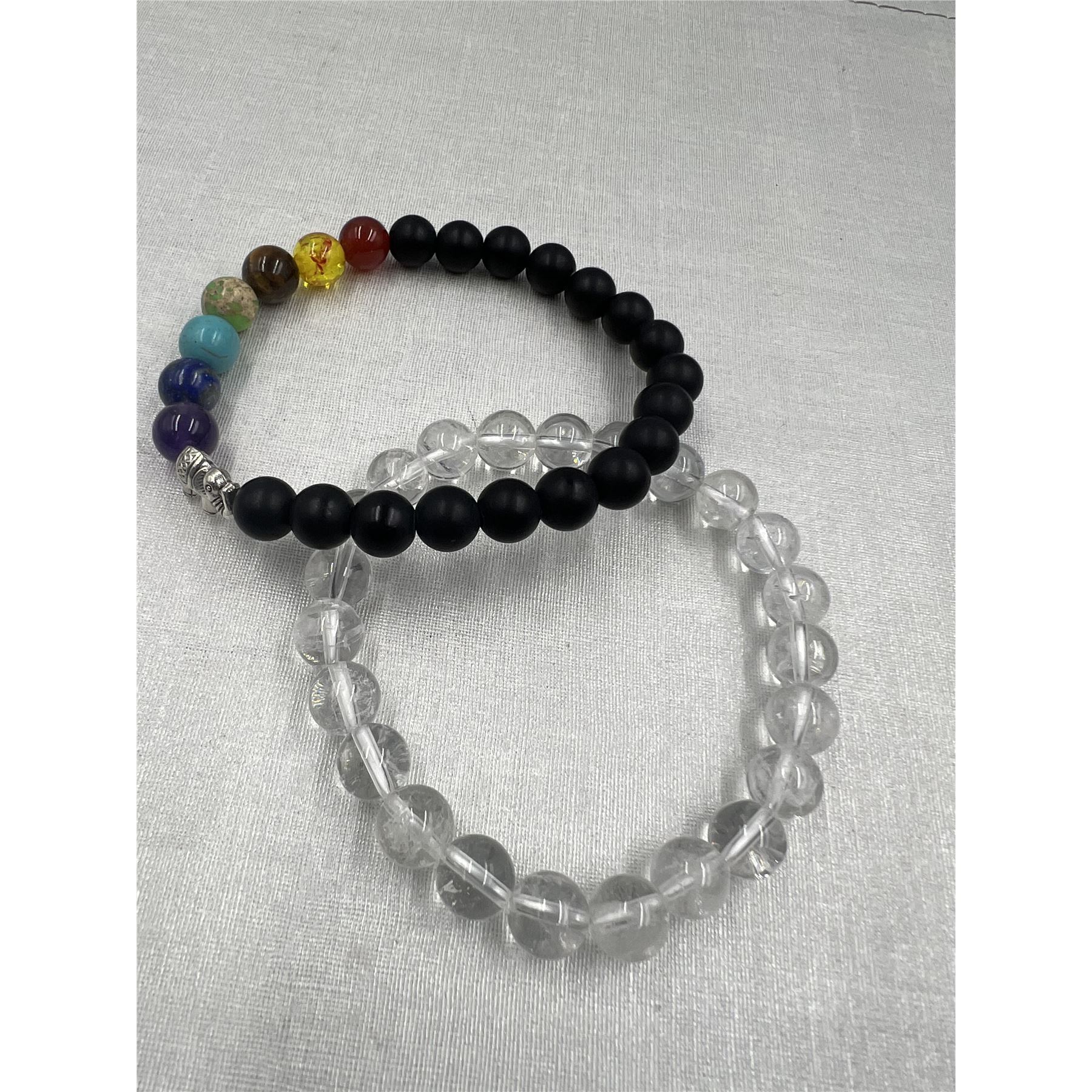 BRAND NEW CLEAR QUARTZ AND CHAKRA BRACELET 8MM .