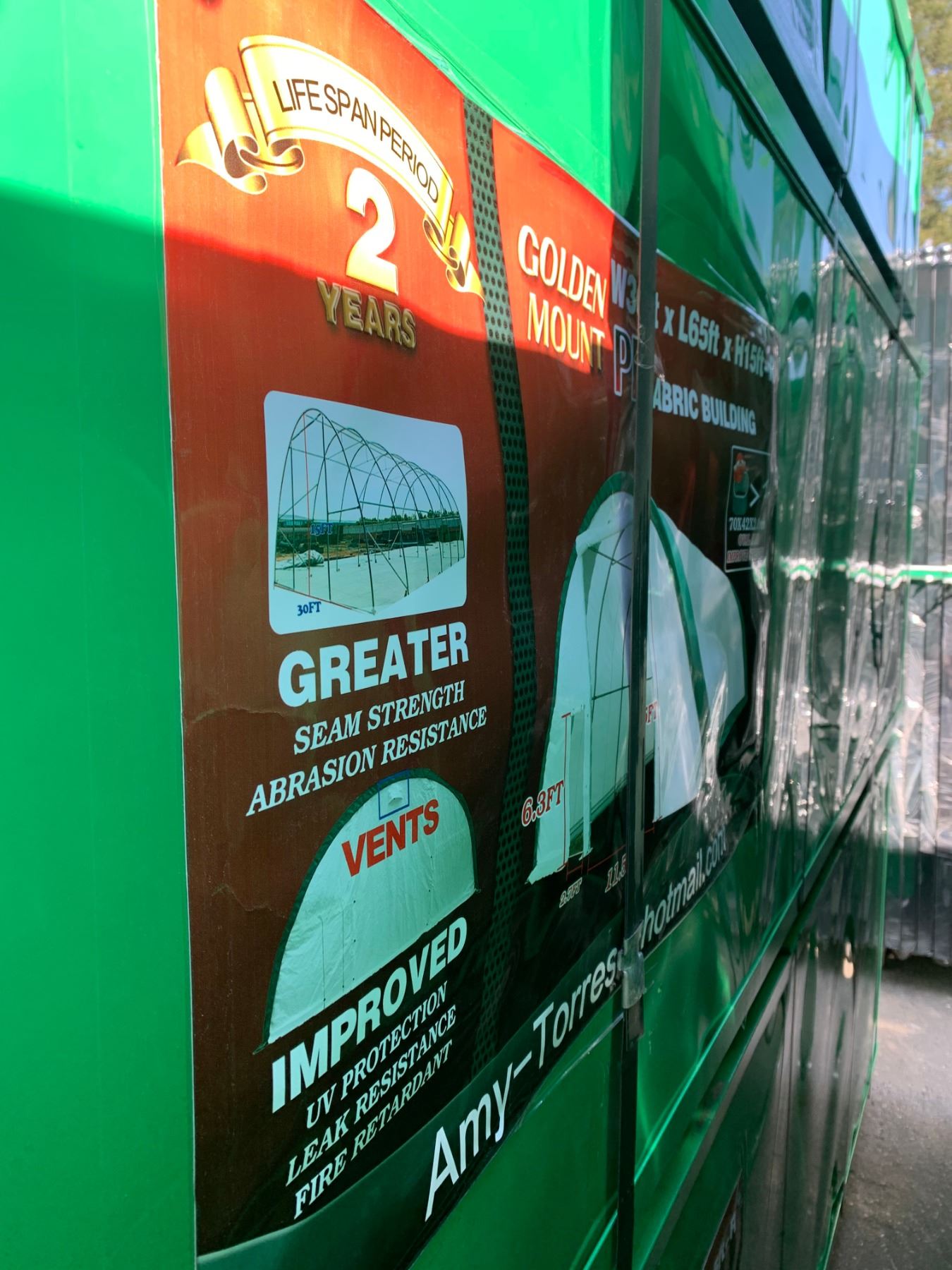 BRAND NEW GOLDEN MOUNT 306515R DOME STORAGE SHELTER 30'X65'X15' GW 1120KG