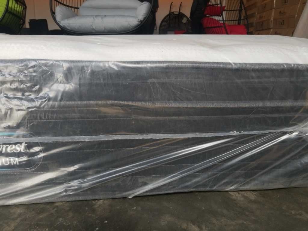 BRAND NEW KINGSIZE BEAUTYREST PLATINUM MATTRESS - BAG RIPPED AND SNAGGED TOP QUILT, DIRT SCUFF AT BOTTOM
