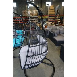 BRAND NEW LIGHT GREY CUSHION HANGING EGG CHAIR - RETAIL $949 W/ NECK PILLOW, FOLDABLE FRAME, POWDER COATED STEEL FRAME, RATED FOR 300LBS