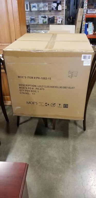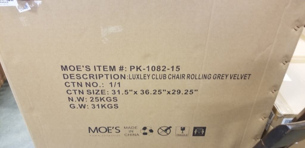 BRAND NEW MOES HOME COLLECTION LUXLEY CLUB CHAIR IN ROLLING GREY VELVET - RETAIL $2199