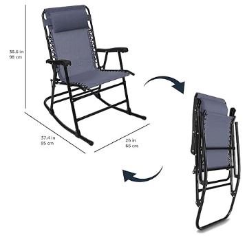 BRAND NEW NAVY FOLDABLE ROCKING CHAIR WITH CANOPY, WITH NECK PILLOW AND FOLD AWAY SUN SHADE, RETAIL