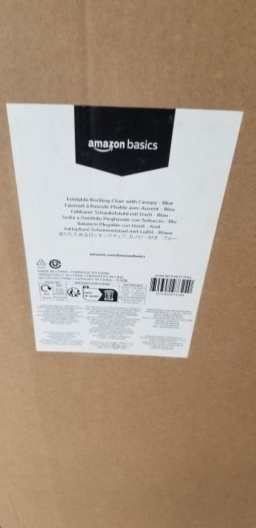 BRAND NEW NAVY FOLDABLE ROCKING CHAIR WITH CANOPY, WITH NECK PILLOW AND FOLD AWAY SUN SHADE, RETAIL $235