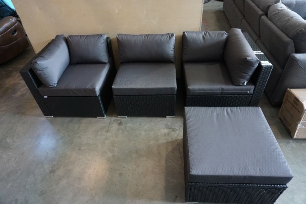 BRAND NEW PREMIUM RATTAN OUTDOOR 4 PIECE MODULAR SECTIONAL SOFA W/ DARK GREY CUSHIONS - RETAIL $1299 POWDER COATED STEEL FRAME AND REMOVABLE WASHABLE CUSHIONS