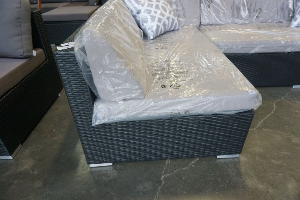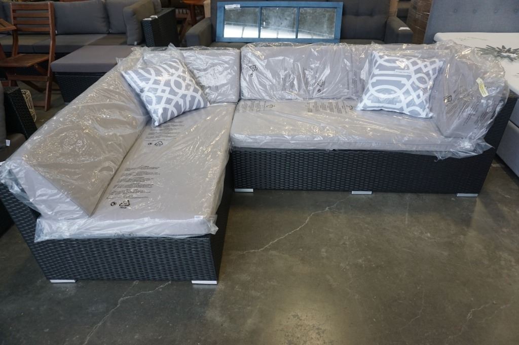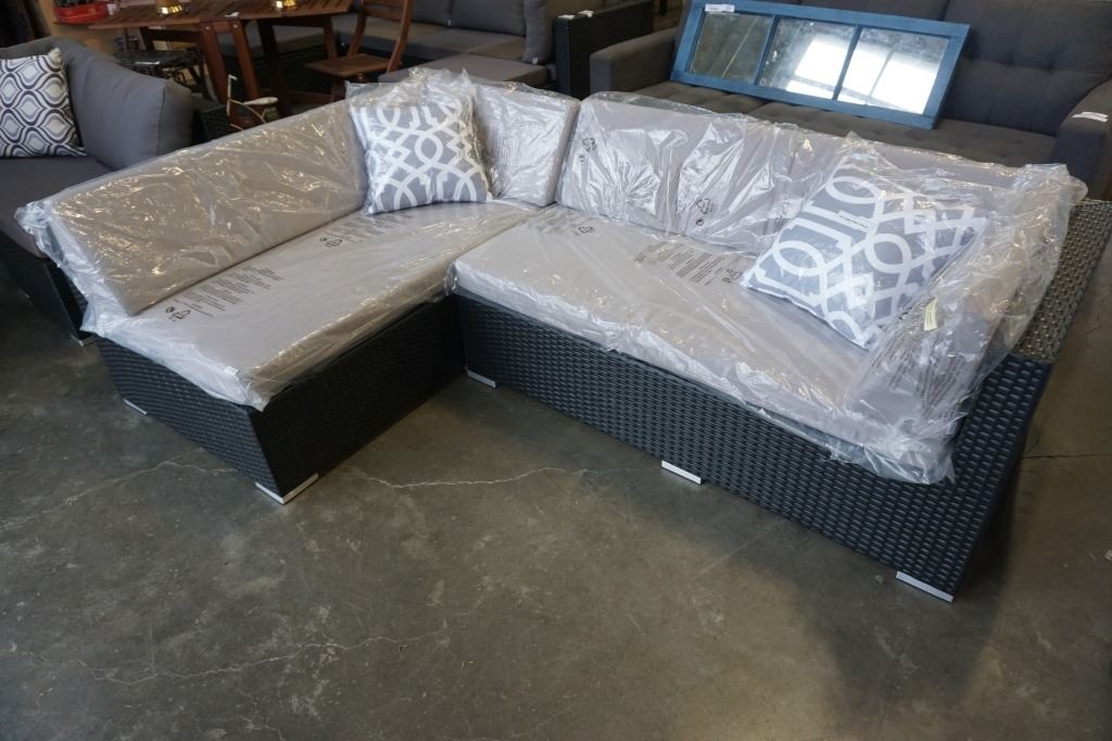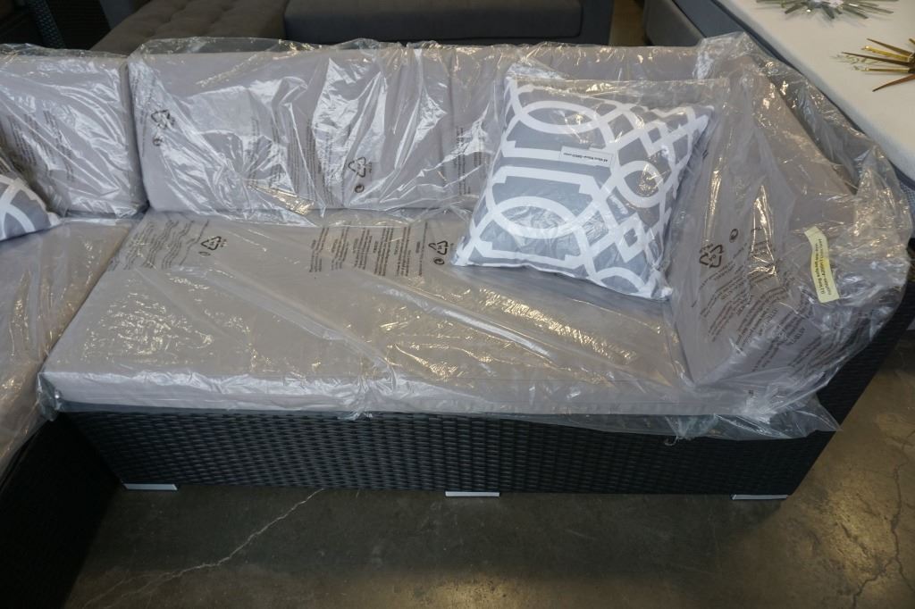 BRAND NEW PREMIUM SMALL L OUTDOOR SECTIONAL RETAIL $1199 W/ LIGHT GREY CUSHIONS AND 2 ACCENT PILLOWS