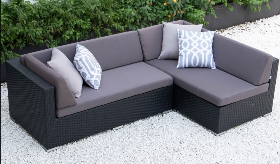 BRAND NEW PREMIUM SMALL L OUTDOOR SECTIONAL RETAIL $1549 W/ DARK GREY CUSHIONS AND 2 ACCENT PILLOWS