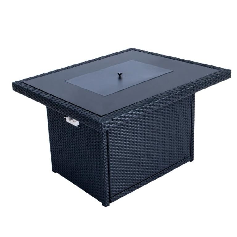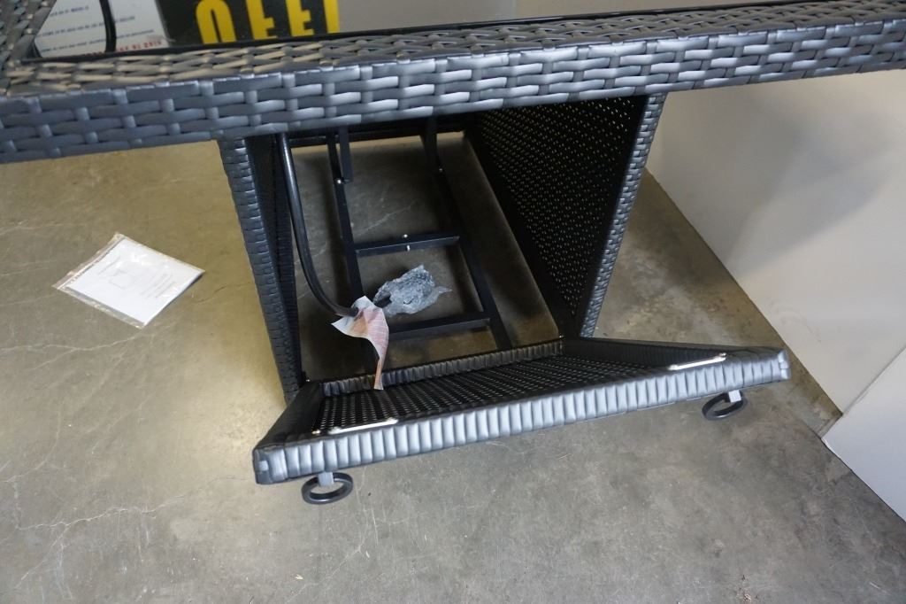 BRAND NEW RATTAN AND GLASS TOP FIRE TABLE RETAIL $1269, 55,000 BTU, CSA APPROVED CAN BE CONVERTED T