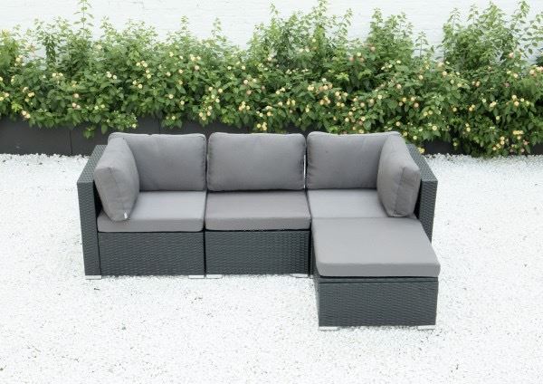 BRAND NEW RATTAN OUTDOOR 4 PIECE MODULAR SECTIONAL SOFA W/ DARK GREY CUSHIONS - RETAIL $1299 POWDER