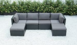 BRAND NEW RATTAN OUTDOOR 6 PIECE MODULAR SECTIONAL SOFA W/ DARK GREY CUSHIONS - RETAIL $1499 POWDER