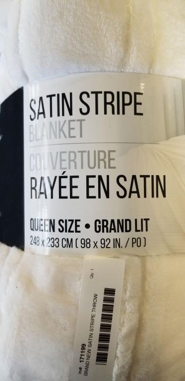 BRAND NEW SATIN STRIPE THROW BLANKET - SIZE 98" X 92"