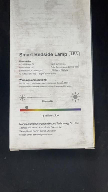 BRAND NEW SMART BEDSIDE LAMP, DIMMABLE, WORKS WITH ALEXA/ GOOGLE, 16 MILLION COLORS