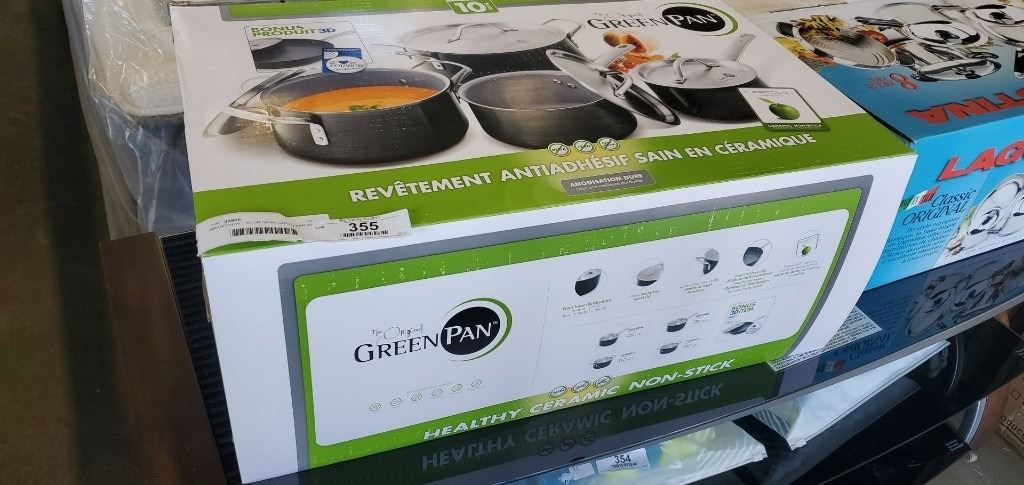 BRAND NEW THE ORIGINAL GREEN PAN SET OF 10 HARD ANODIZED HEALTHY CERAMIC NON-STICK COOKWARE - INCLUDES 2 SAUCEPANS WITH LIDS AND 2 CASSEROLES WITH LIDS AND SKILLET WITH LID