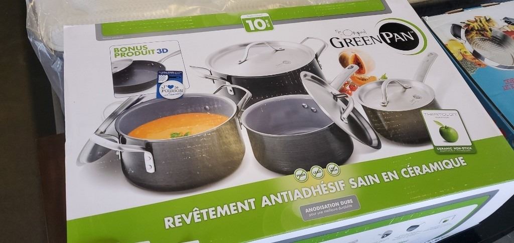 BRAND NEW THE ORIGINAL GREEN PAN SET OF 10 HARD ANODIZED HEALTHY CERAMIC NON-STICK COOKWARE - INCLUDES 2 SAUCEPANS WITH LIDS AND 2 CASSEROLES WITH LIDS AND SKILLET WITH LID