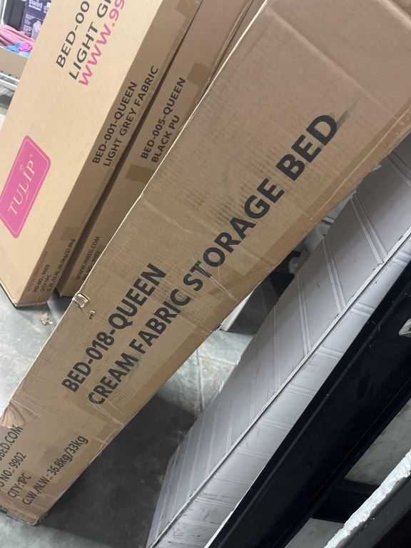 BRAND NEW TULIP QUEENSIZE STORAGE PLATFORM BEDFRAME IN CREAM FABRIC MODEL BED-018