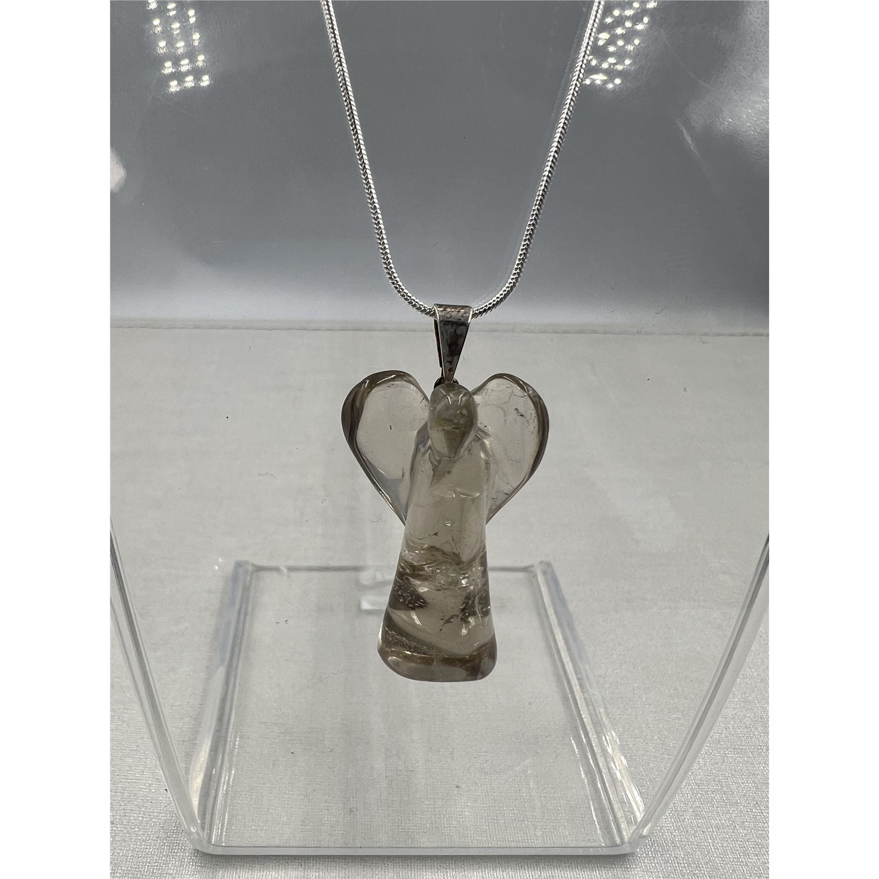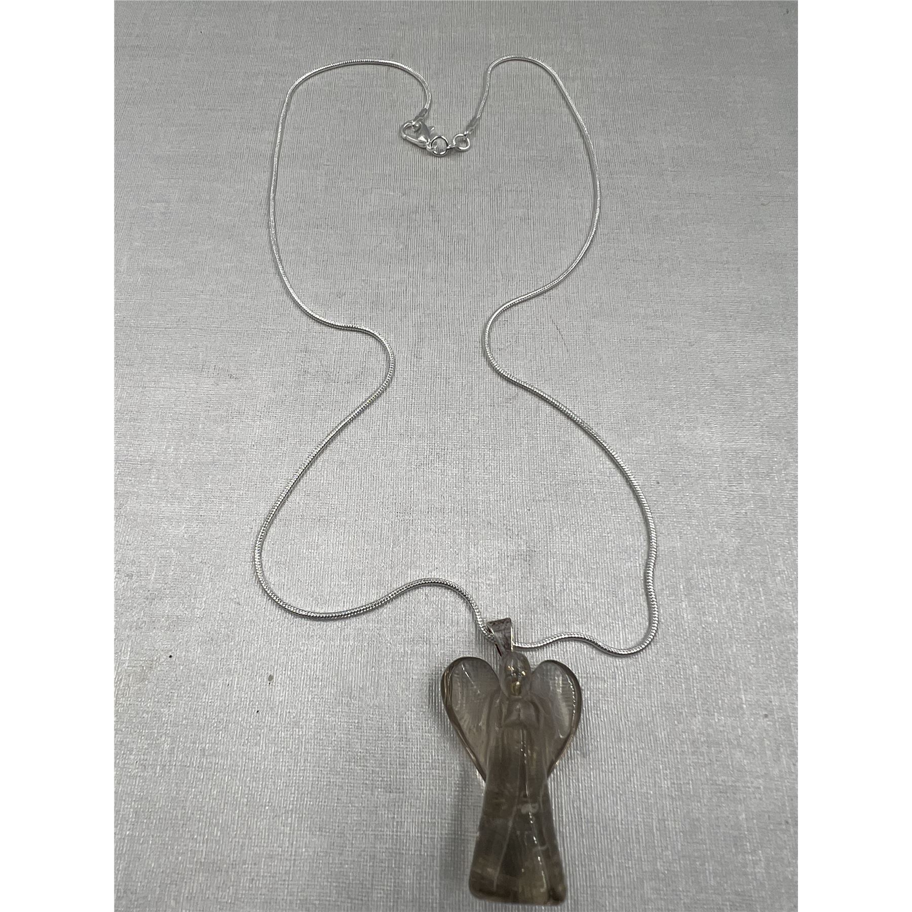 BRAND NEWV S925 SILVER CHAIN WITH SMOKY QUARTZ ANGEL PENDANT