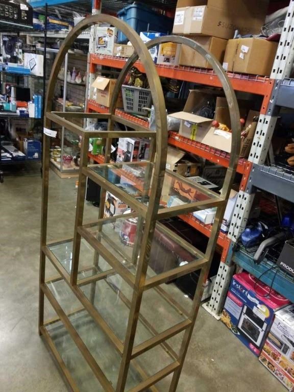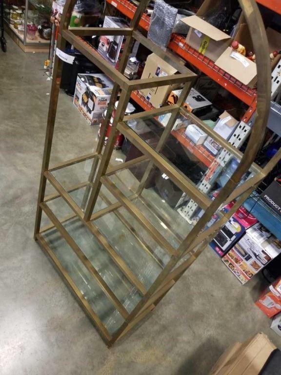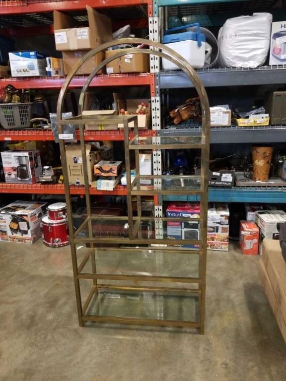 BRASS AND GLASS MULTI TIER SHELF