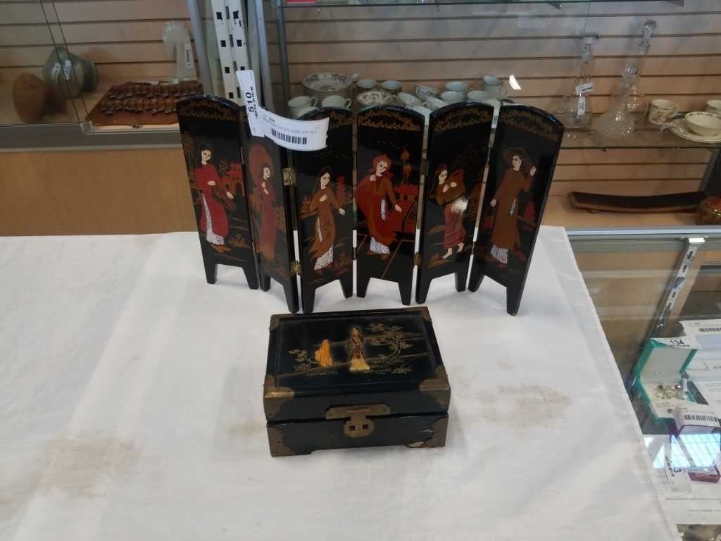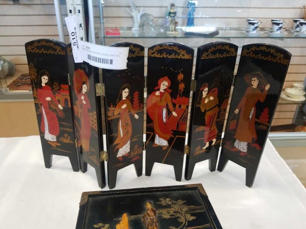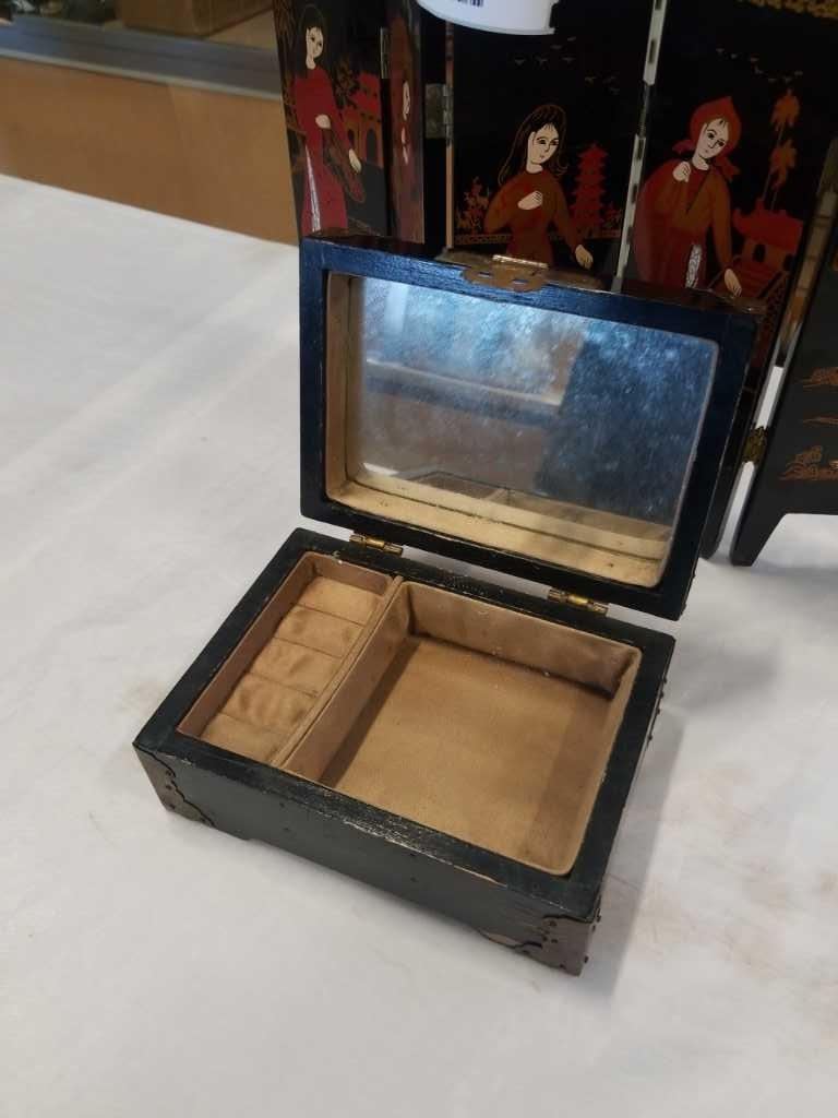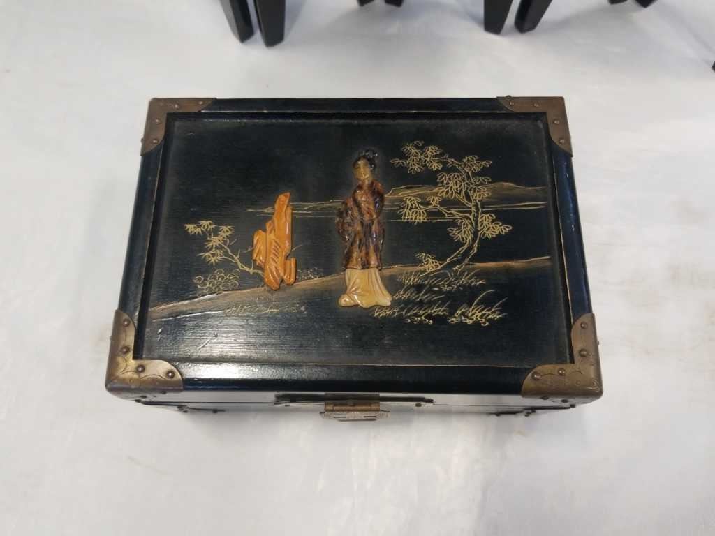 BRASS BOUND EASTERN JEWELLERY BOX AND MINI DIVIDER