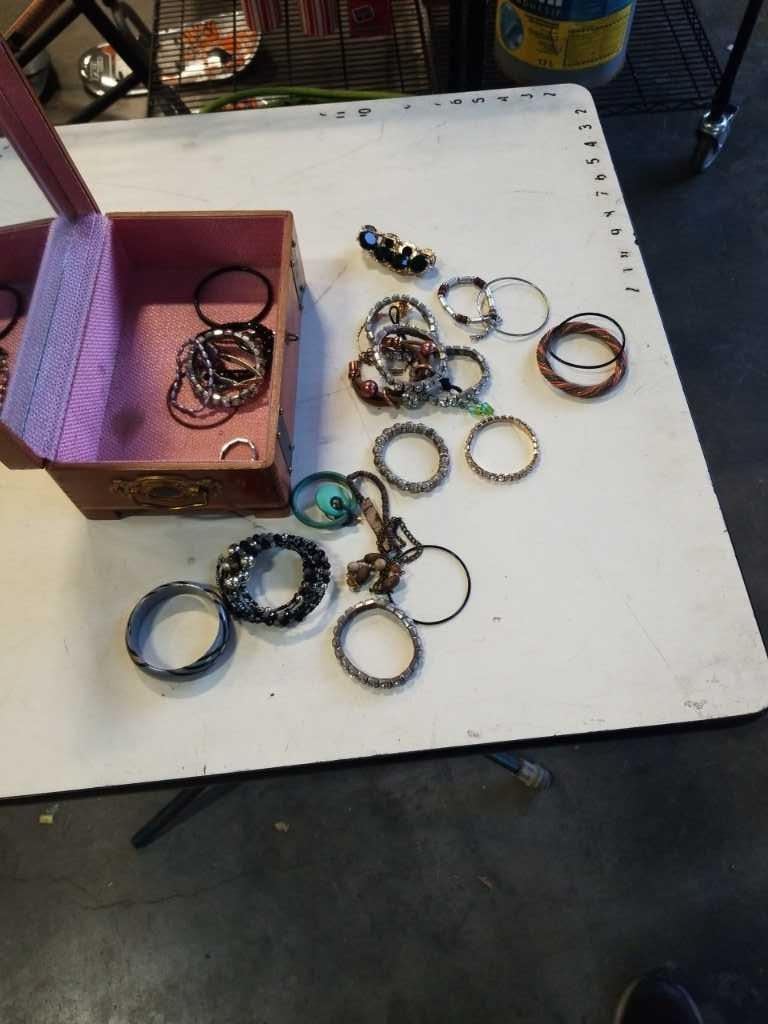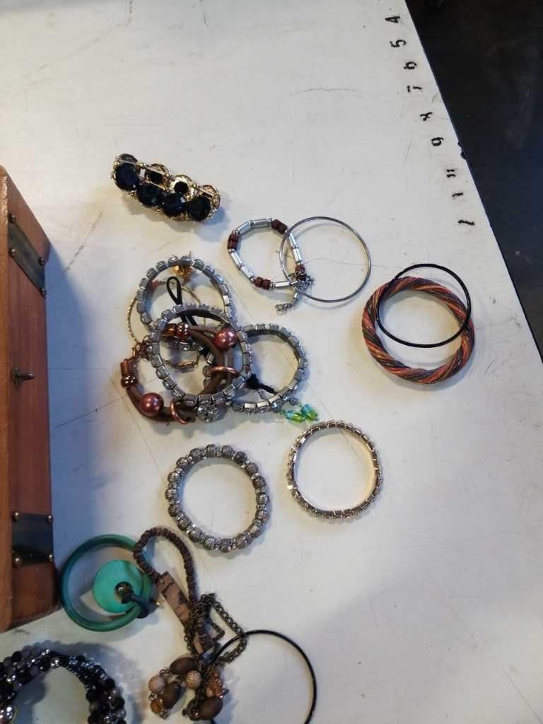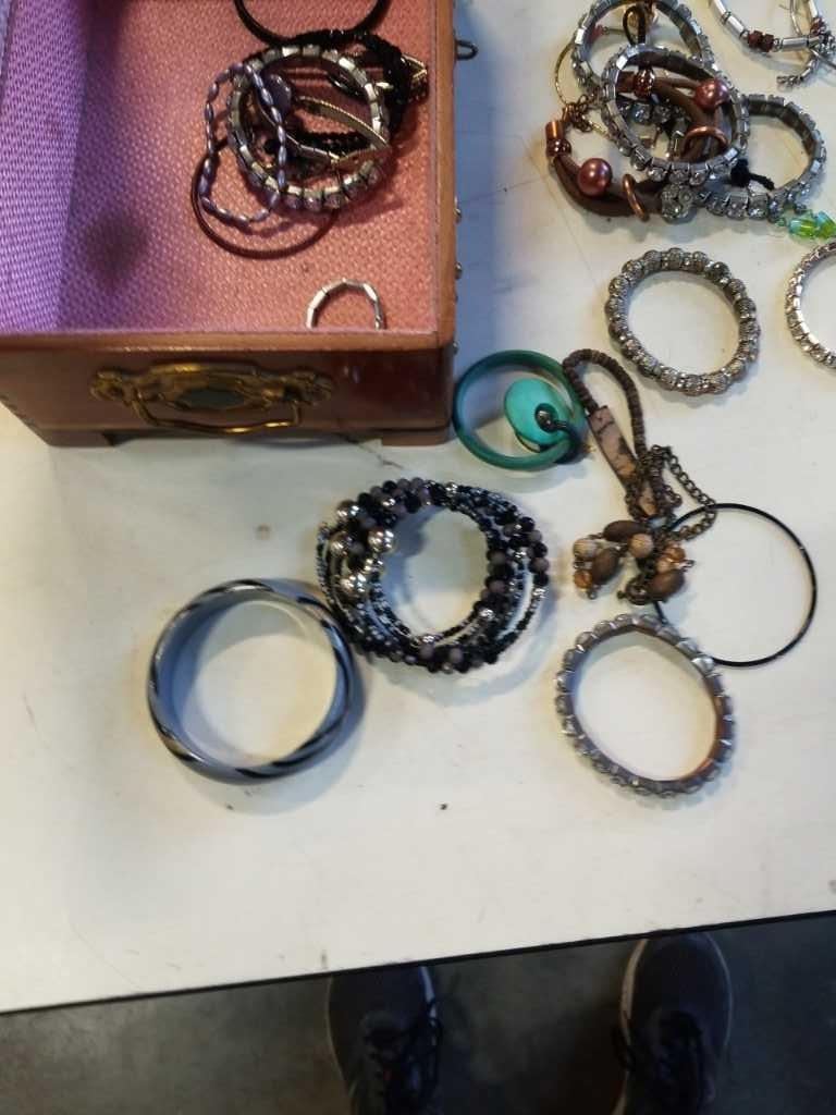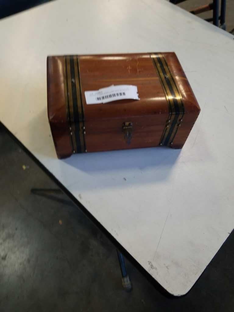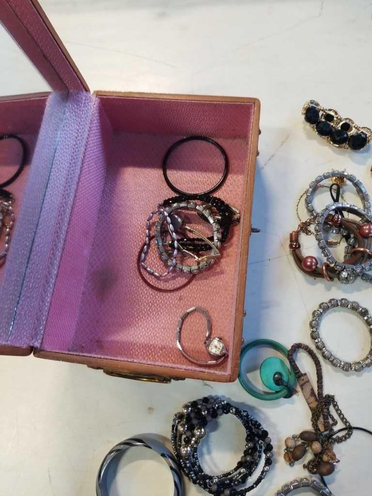 BRASS BOUND JEWELLERY BOX W/ ESTATE JEWELLERY