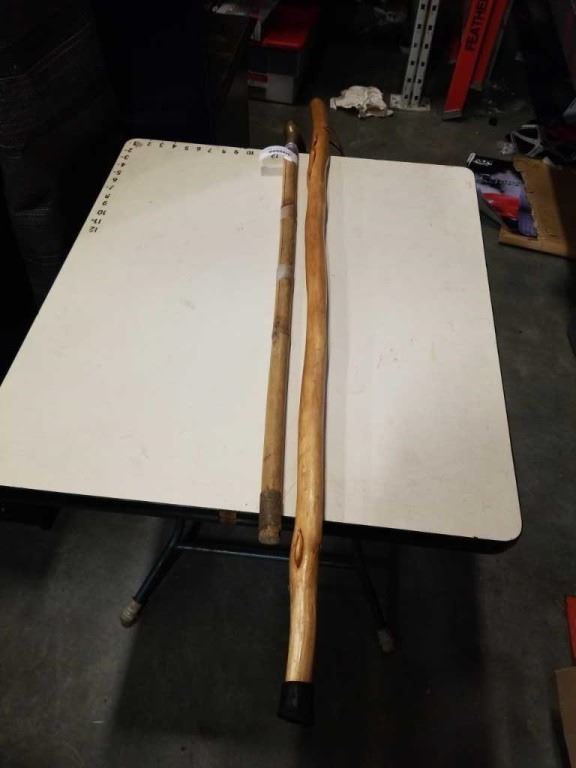 BRASS EAGLE HEAD CANE AND CARVED WOOD CANE