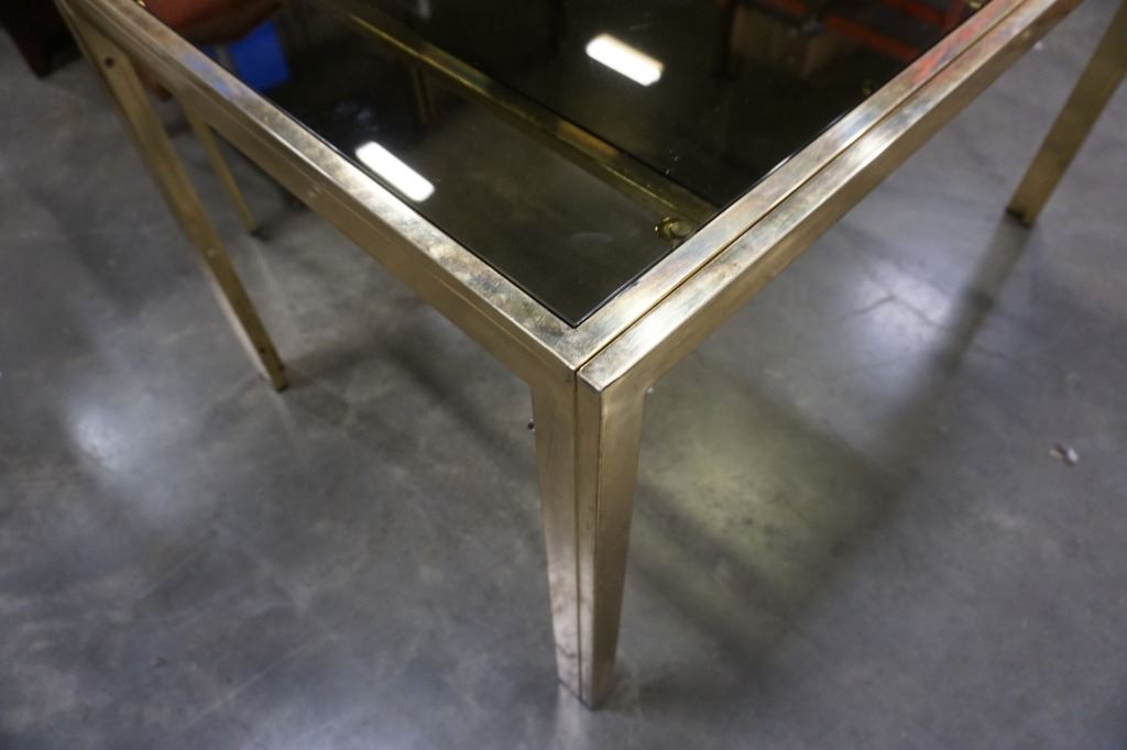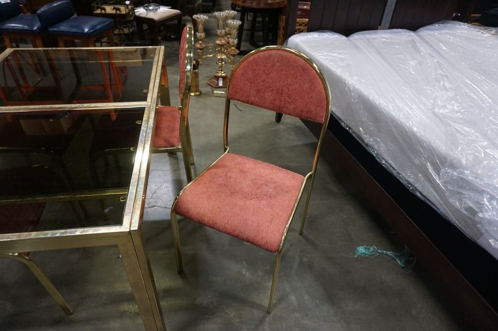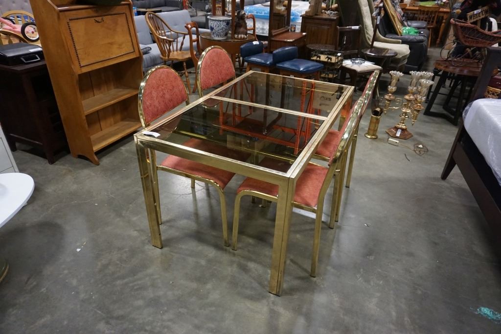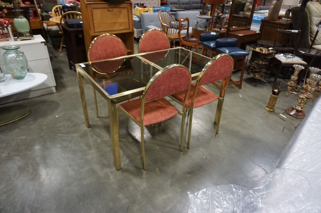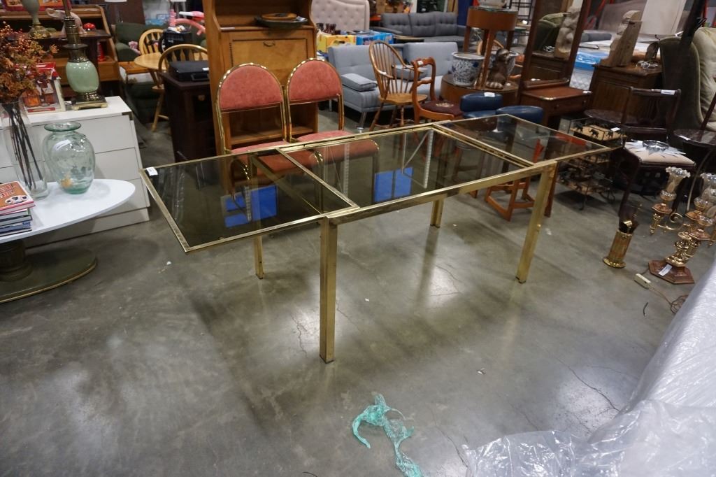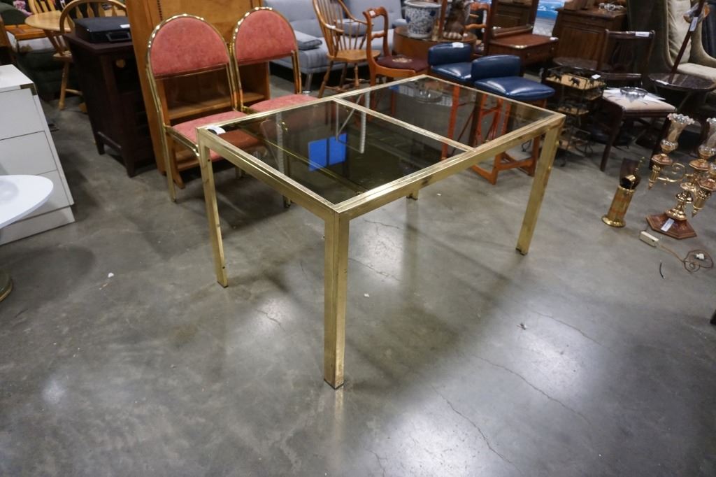 BRASS GLASSTOP DINING TABLE AND 4 CHAIRS - ITALIAN, DRAWLEAF