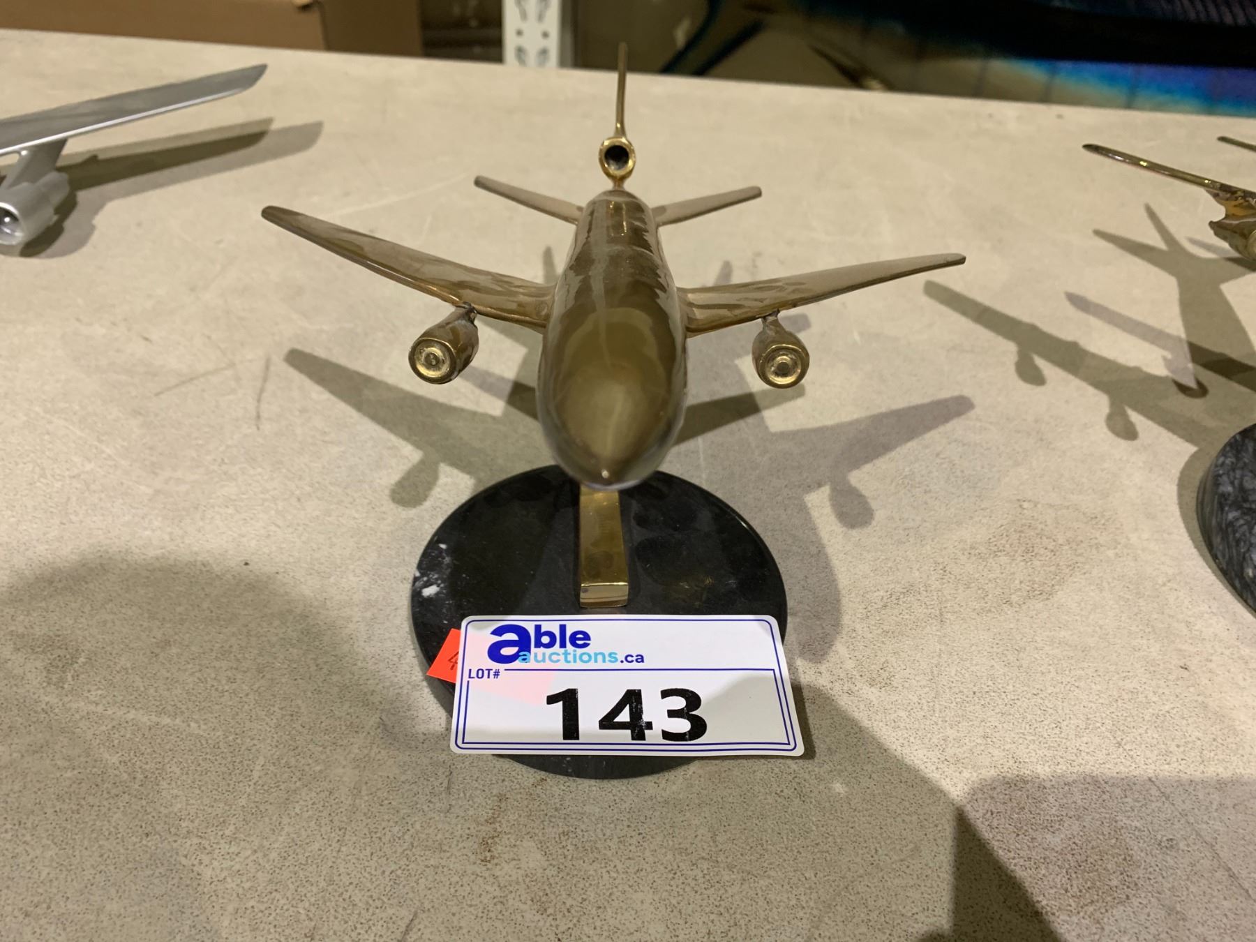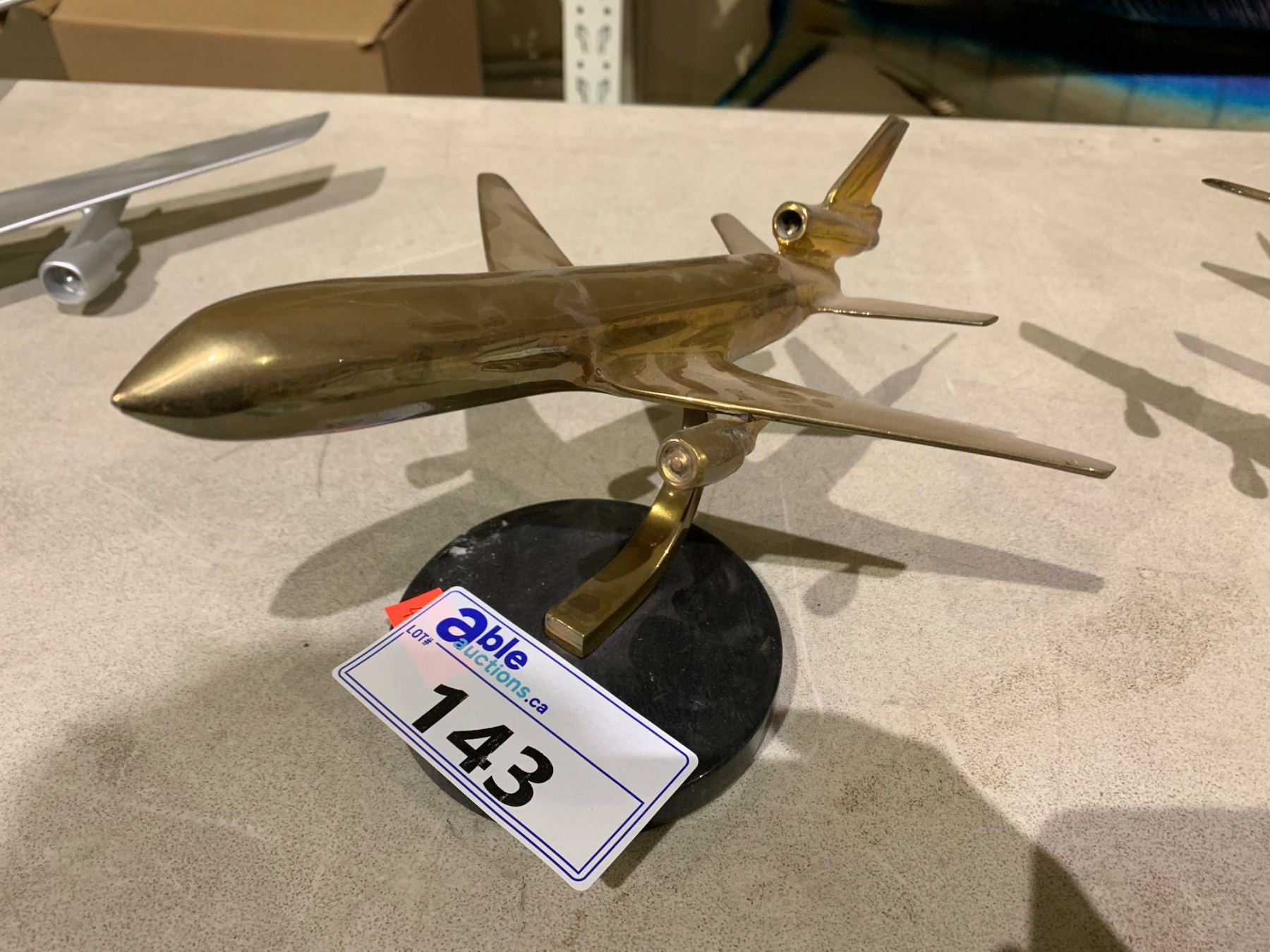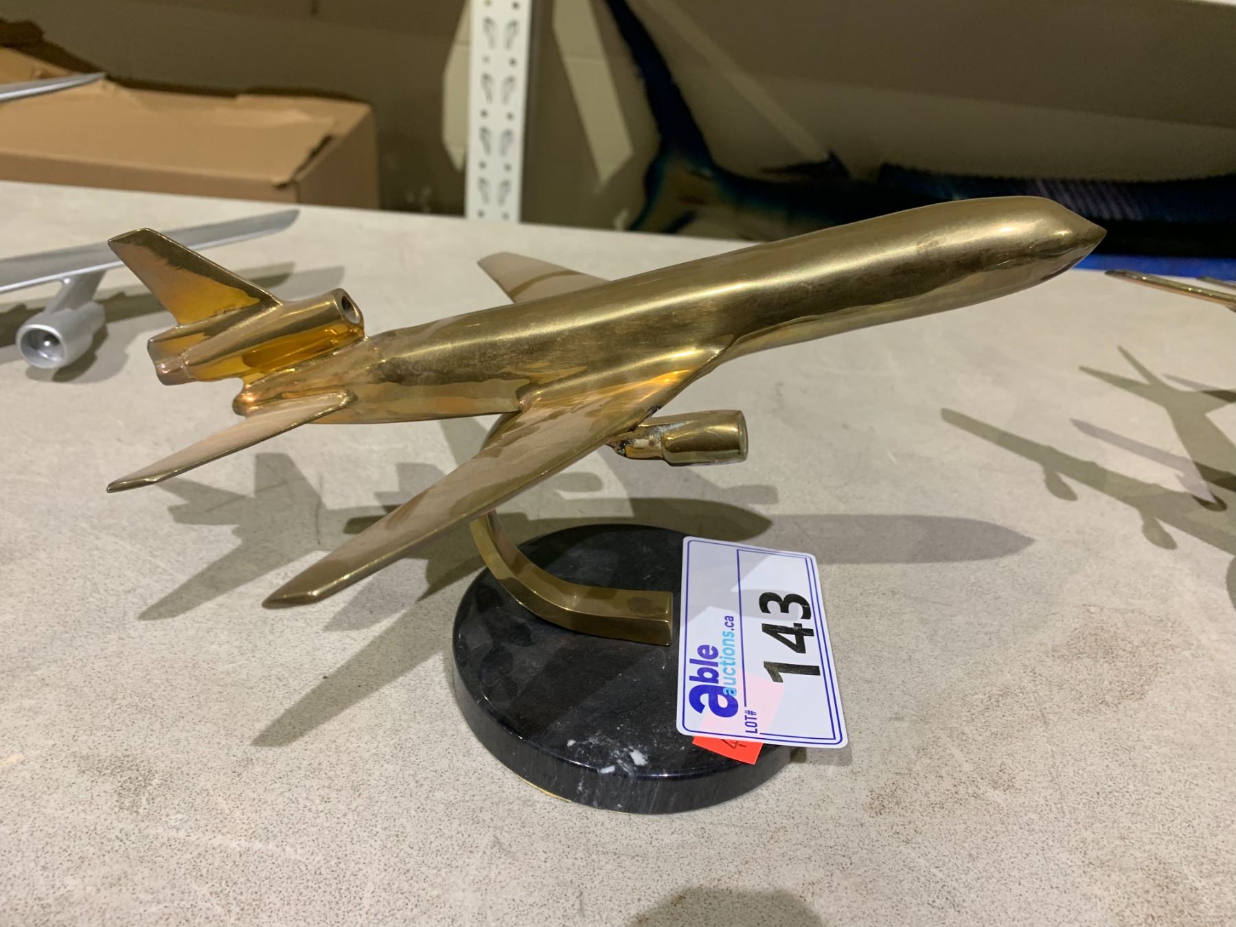 BRASS MODEL AIRPLANE ON MARBLE STAND 10.5" LONG