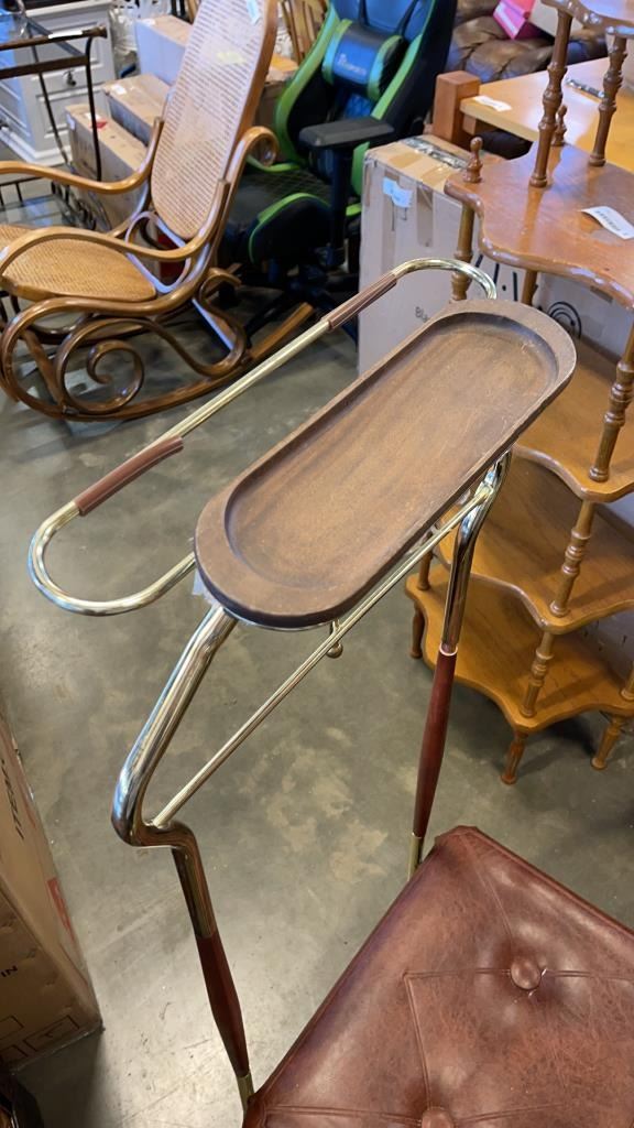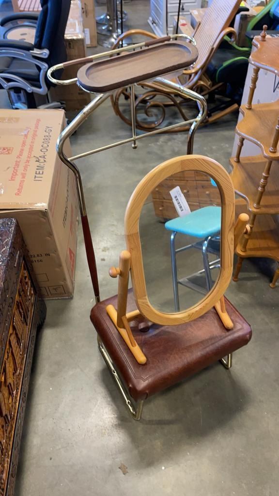 BRASS VALET STAND/BENCH AND TILTING TABLE MIRROR
