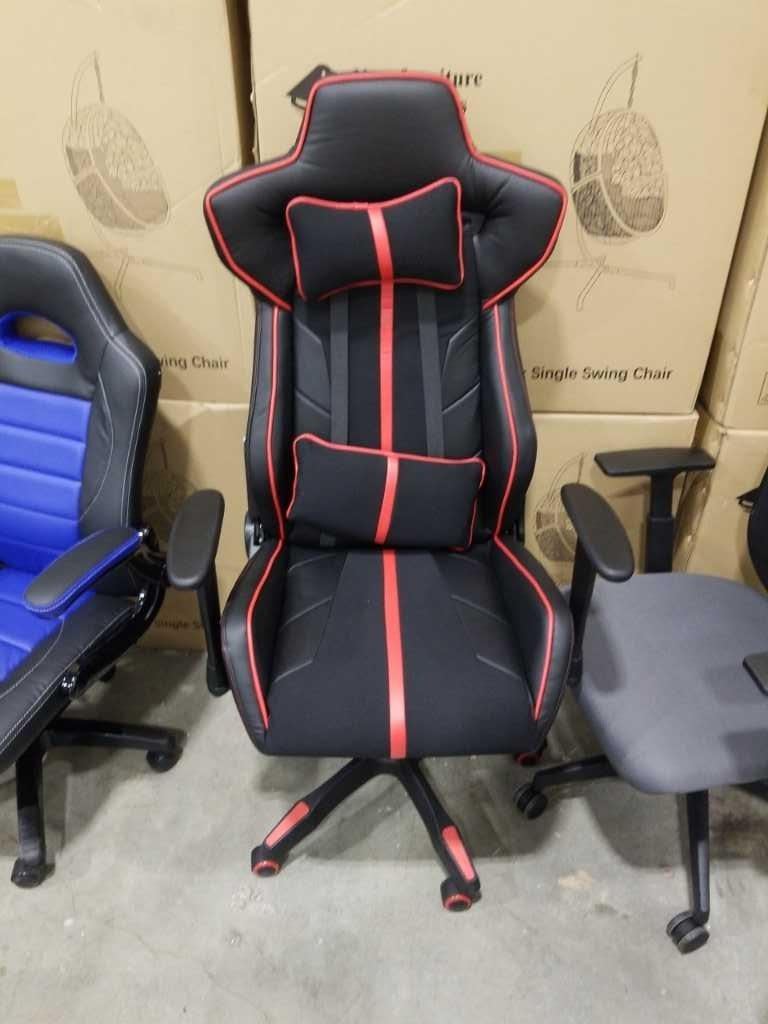 BRASSEX RED AND BLACK GAS LIFT GAMING CHAIR, RETAIL $229