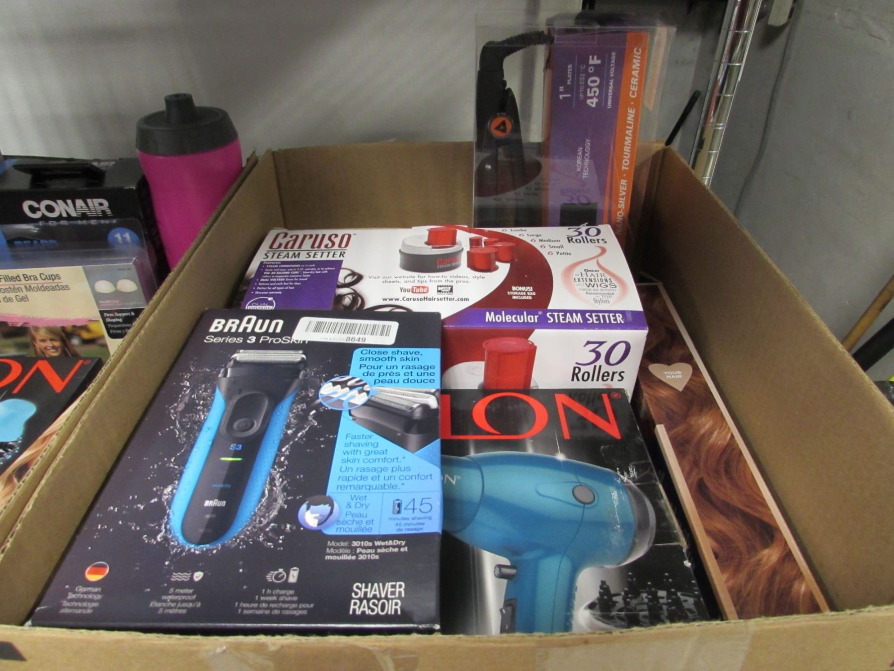 BRAUN PROSKIN 3 SERIES SHAVER, CARUSO STEAM SETTER, REVLON PERFECT HEAT HAIR DRYER, AVANTI ULTRA HAIR STRAIGHTENER, CONAIR HAIR CURLER