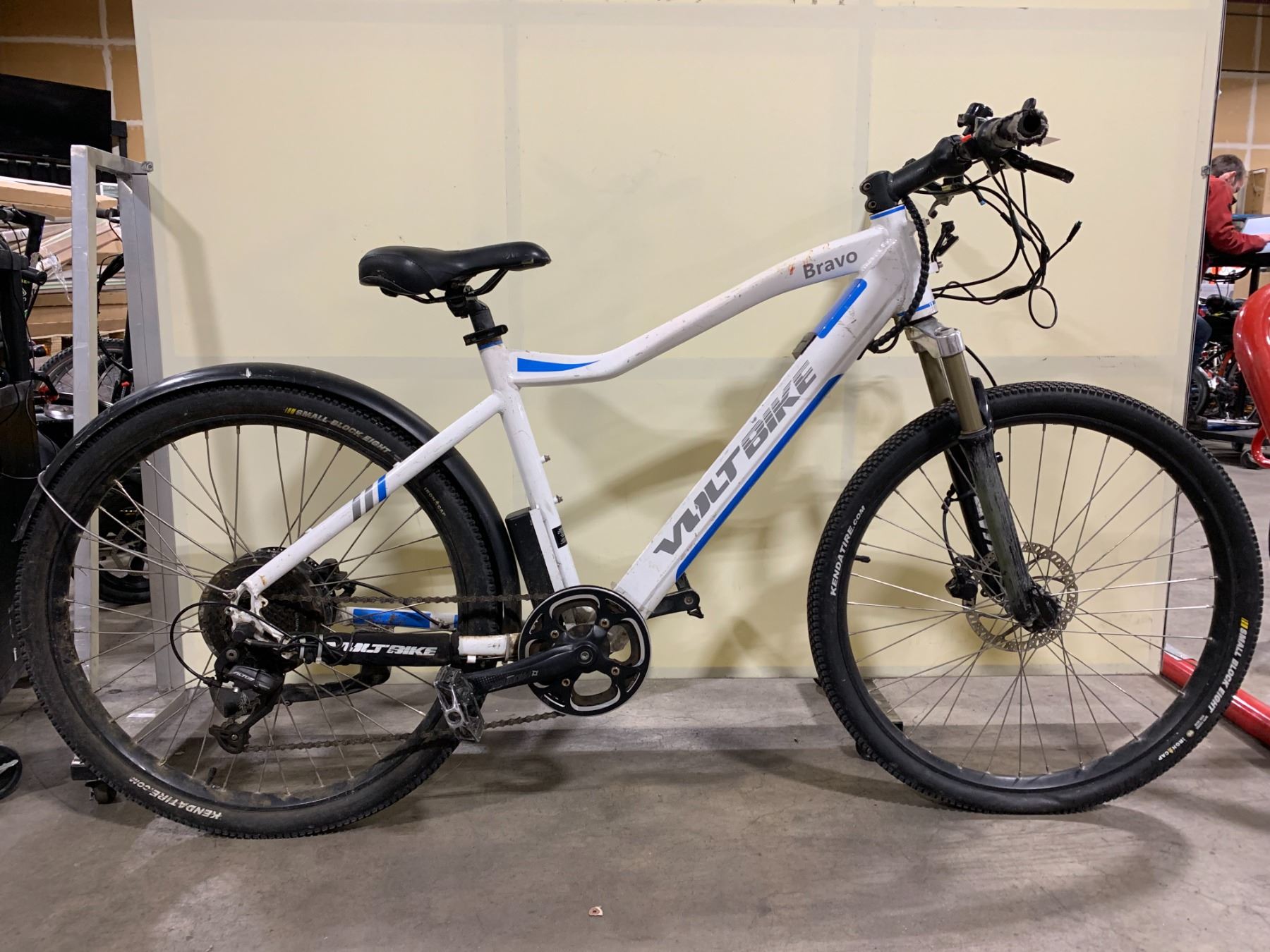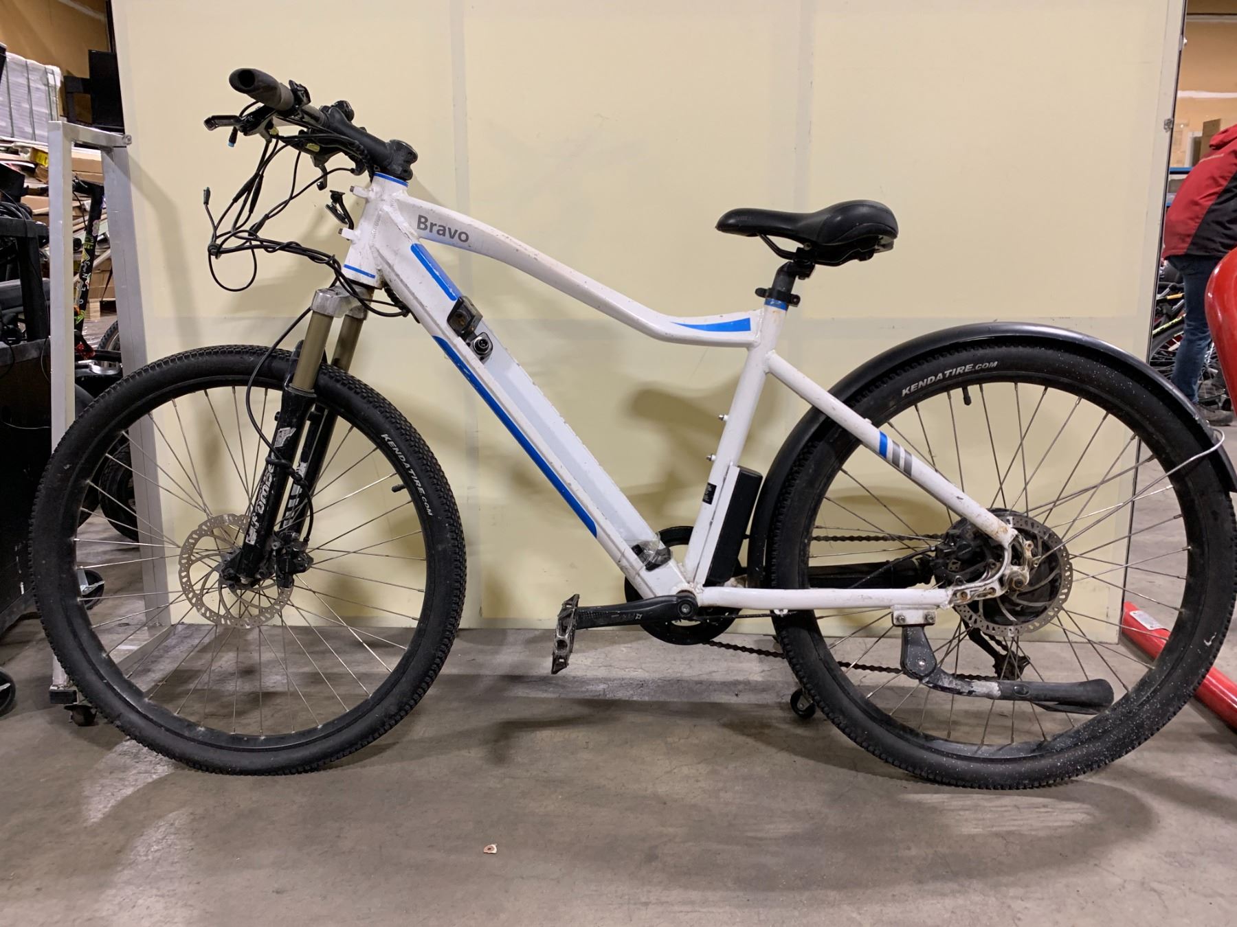 BRAVO VOLT BIKE WHITE 7 SPEED FRONT SUSPENSION ELECTRIC BIKE WITH FULL DISC BRAKES *NO KEYS, NO BATTERY*