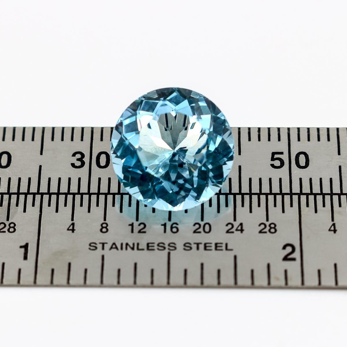BREATHTAKING 7.03 CT SWISS BLUE TOPAZ. FANCY ROUND CUT MEASURING 12.1 x 6.9 mm. THIS INVESTMENT QUALITY GEMSTONE IS NEAR FLAWLESS DISPLAYING VIVID SATURATION AND SUPERB SPARKLE. HARD TO FIND A NICER SWISS TOPAZ THAN THIS. HEATED TO ENHANCE COLOR.