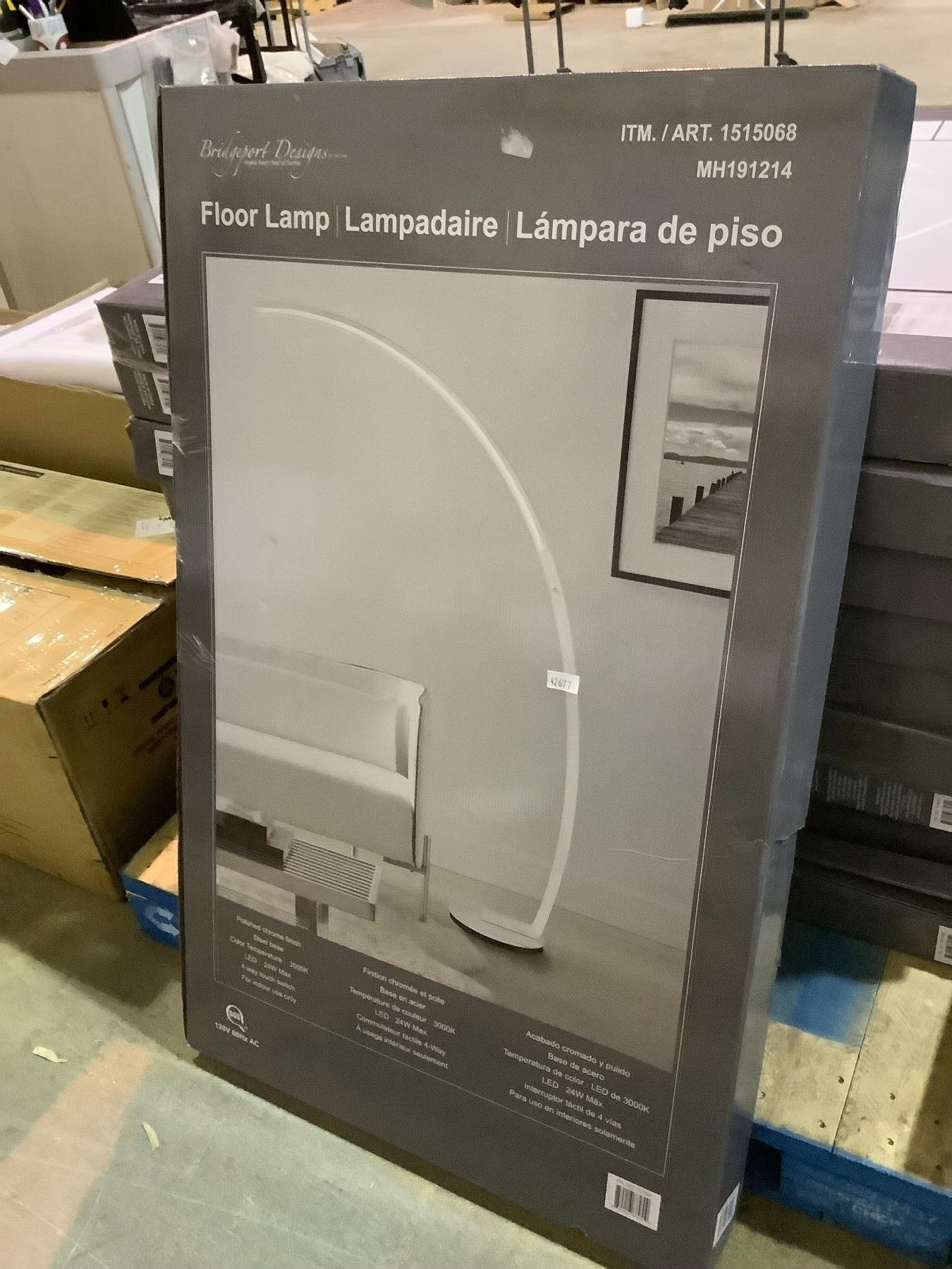 BRIDGEPORT DESIGNS FLOOR LAMP POLISHED CHROME FINISH, STEEL BASE, 3000K COLOR TEMPERATURE, 4 WAY TOUCH SWITCH
