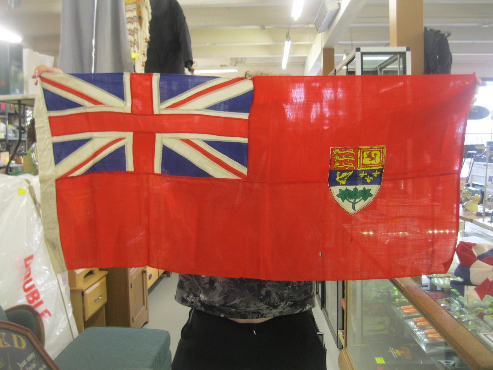 BRITISH MADE ANTIQUE UNION JACK FLAG & A CANADIAN RED ENSIGN FLAG, CIRCA 1930