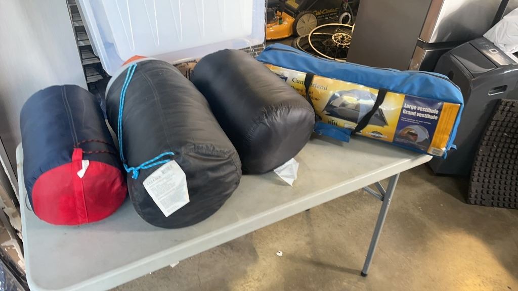 BROADSTONE 5 MAN TENT AND 3 SLEEPING BAGS