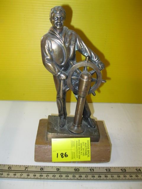 BRONZE FIGURINE OF THE SAILOR WITH SHIP'S WHEEL SIGNED BY F. ROBECTINI