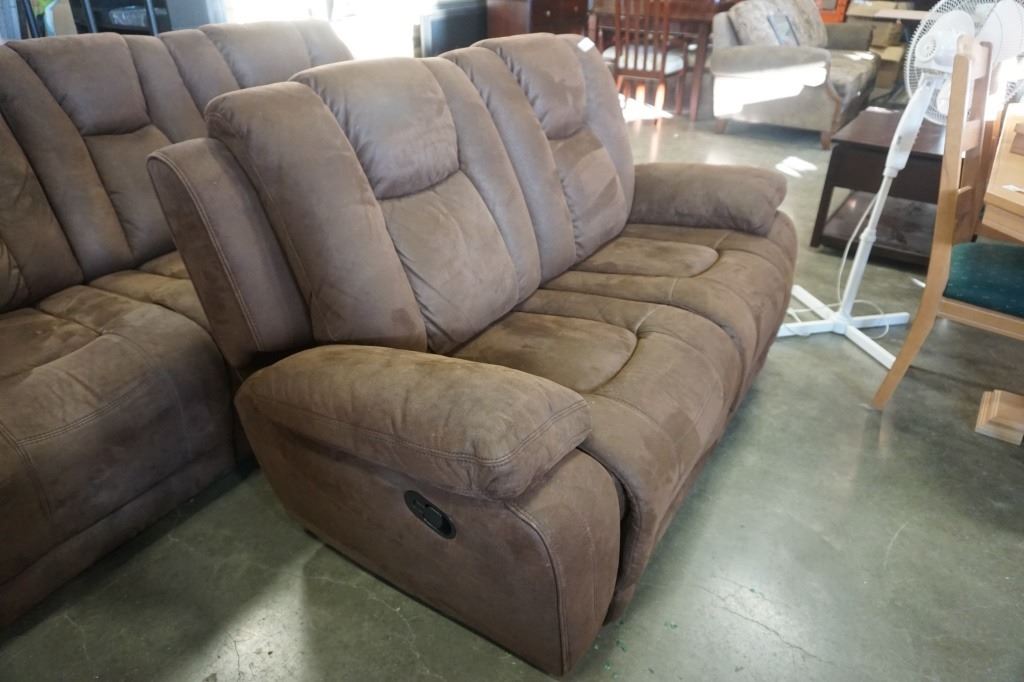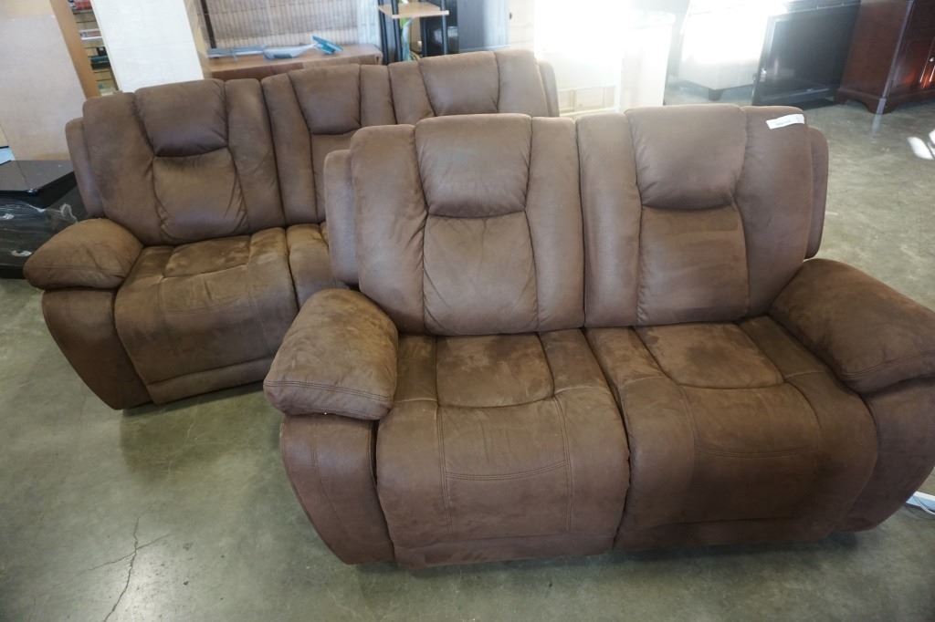 BROWN SUEDE SOFA AND LOVESEAT RECLINING SET