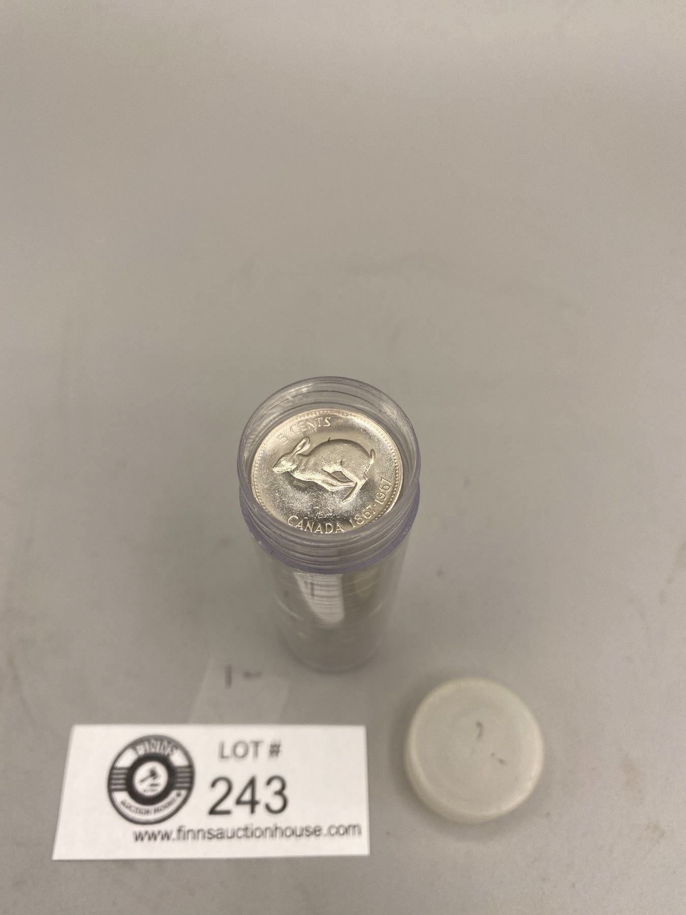 BU Roll Of 1967 Canadian Nickles In Plastic Tube