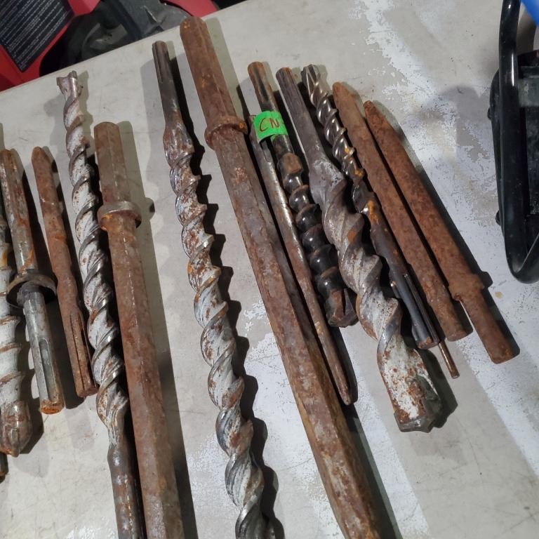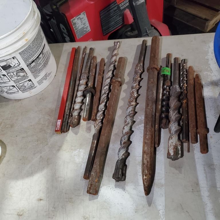 BUCKET OF LARGE HAMMER DRILL BITS