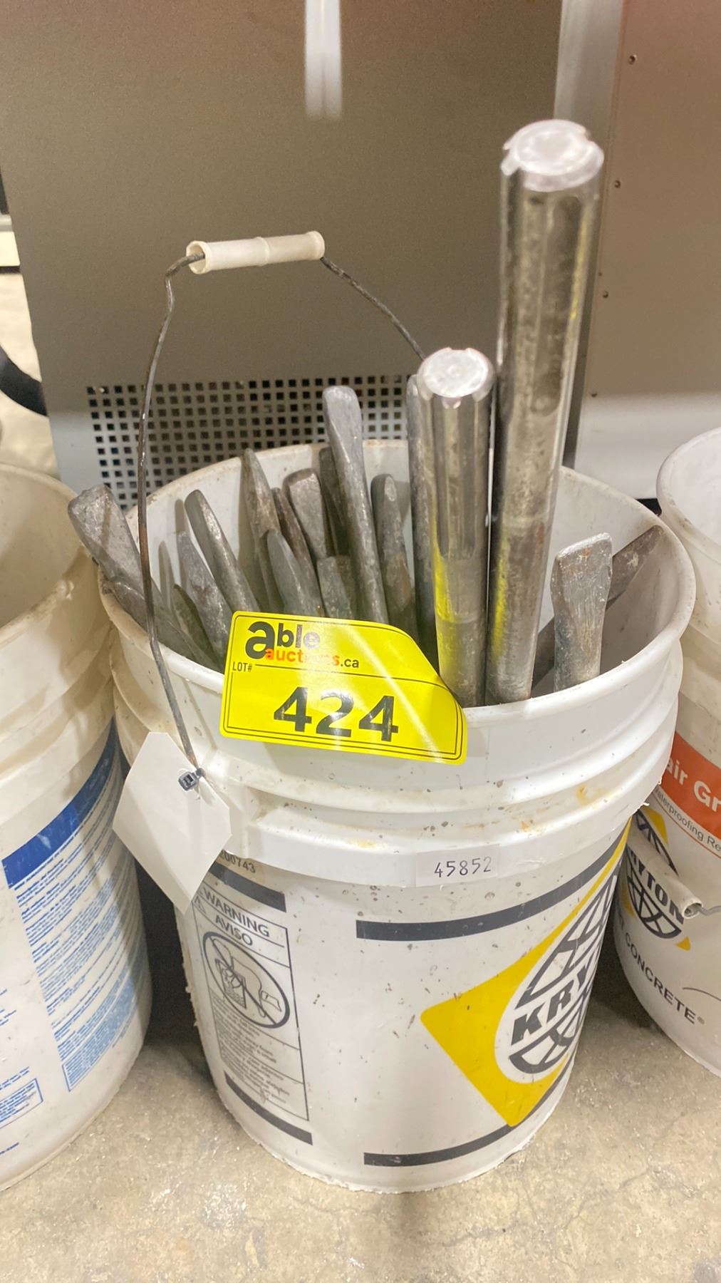 BUCKET OF VARIOUS SIZED CHISEL BIT ATTACHMENTS