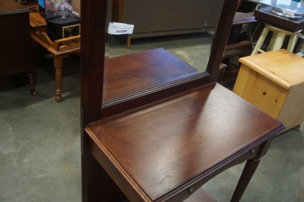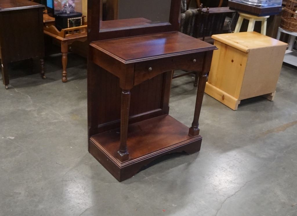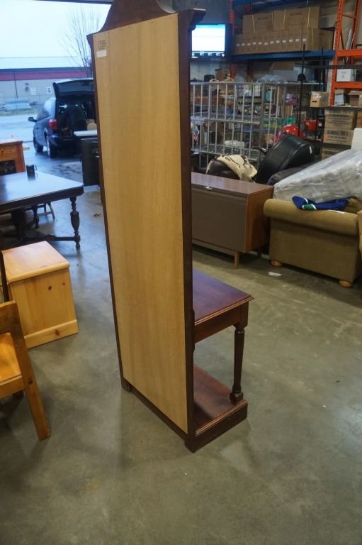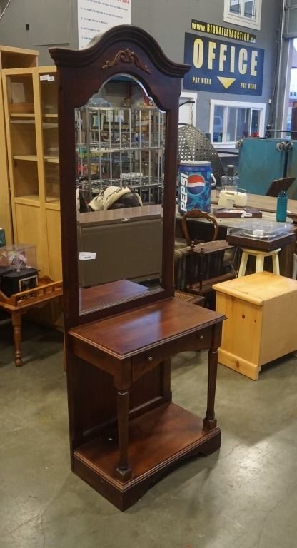 BUHLER FURNITURE MAHOGANY MIRROR HALL STAND - APPX 81 INCHES TALL