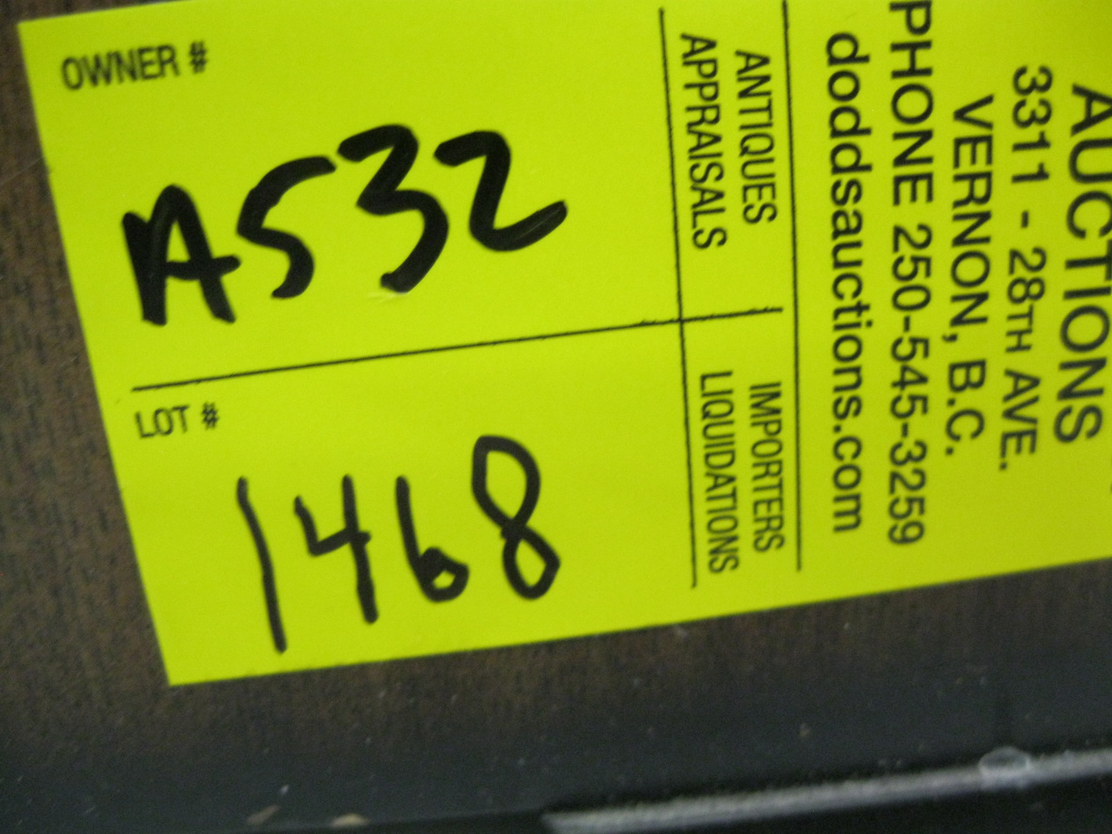 Invoices are available after the auction closes through your Live Auction World Account. If paying by e-transfer, send to: bob@doddsauction.com (auto-deposited)
