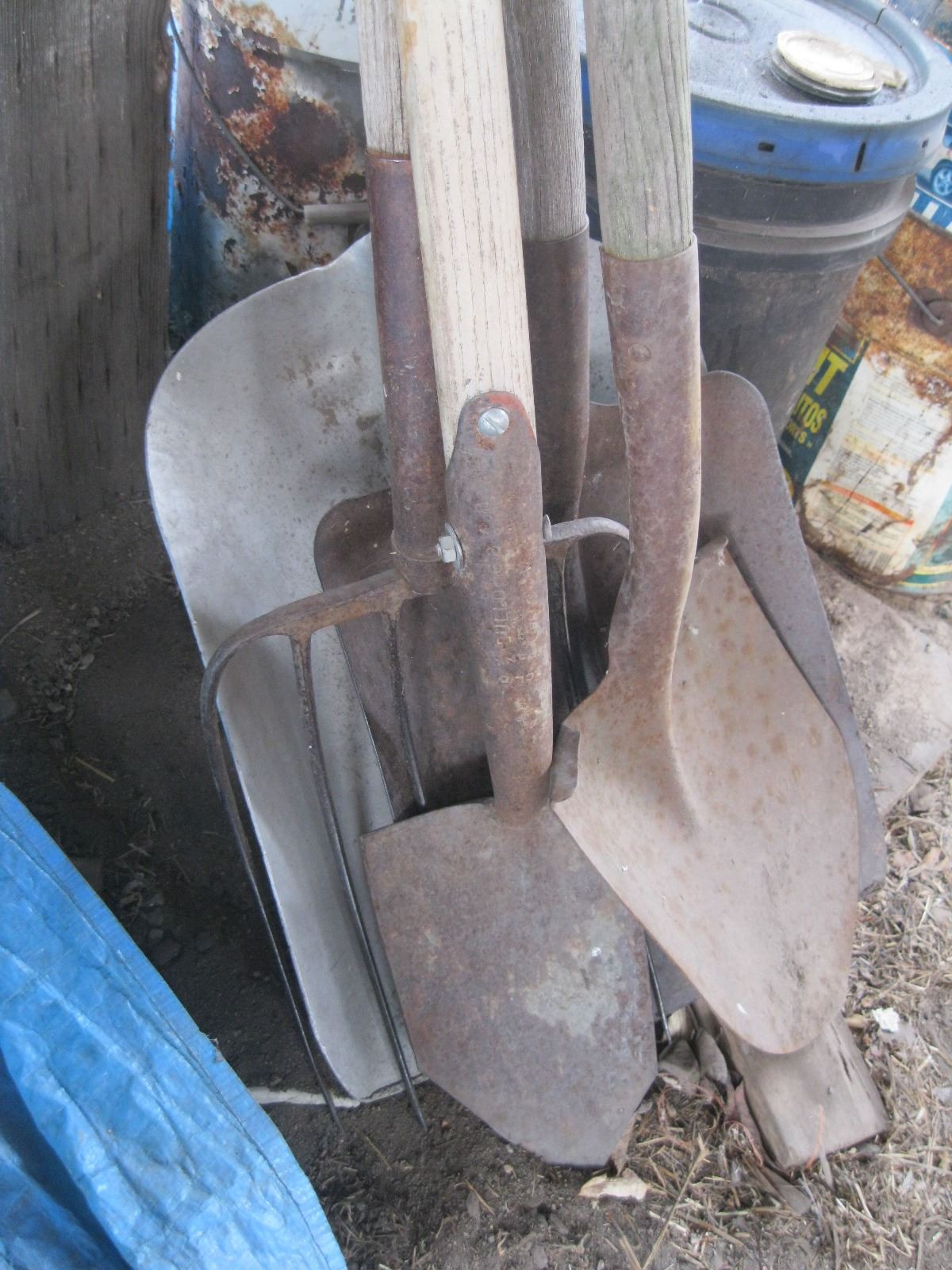 BUNDLE OF ASST. SHOVELS, FORK, ETC.