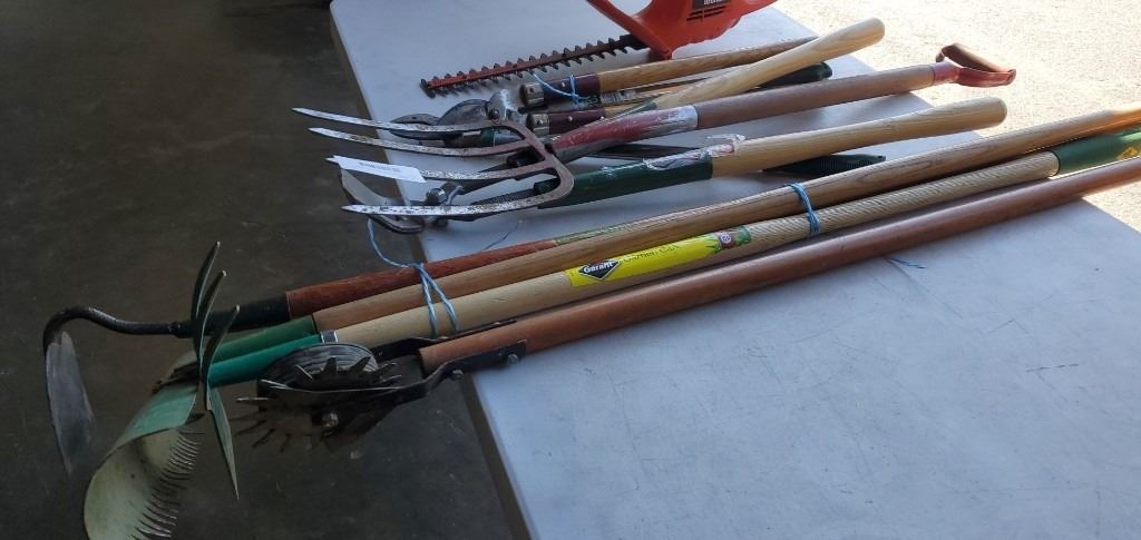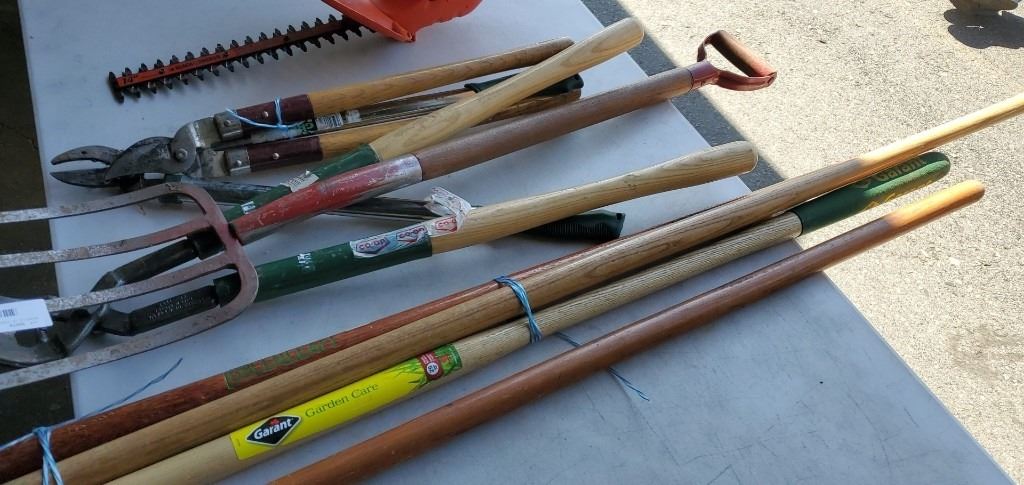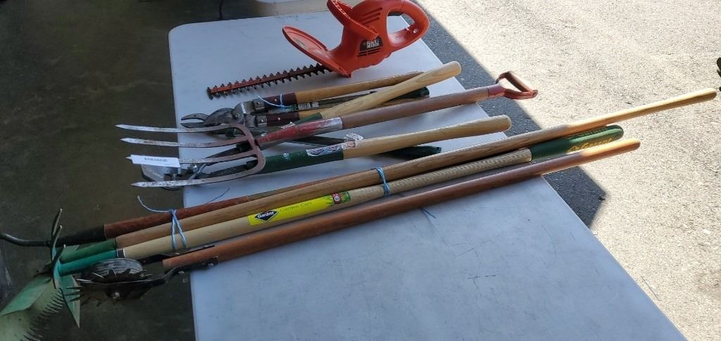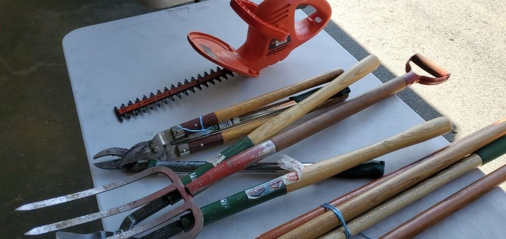 BUNDLE OF GARDEN TOOLS AND HEDGE TRIMMER