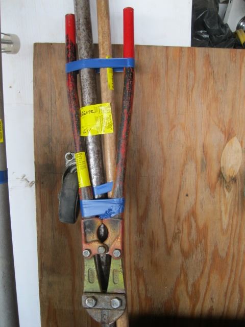 BUNDLE OF PRY BAR, BOLT CUTTERS & LG. BROOM