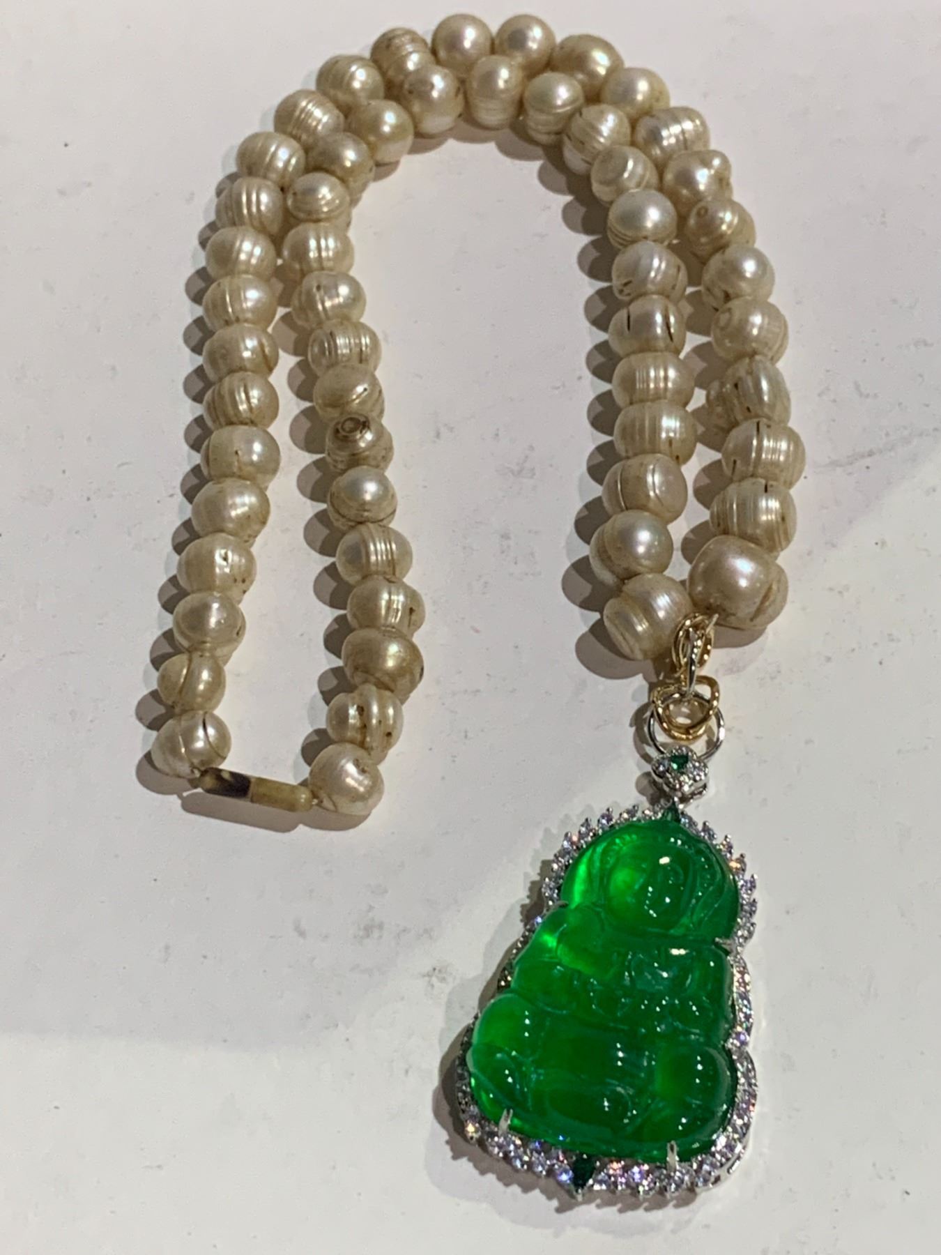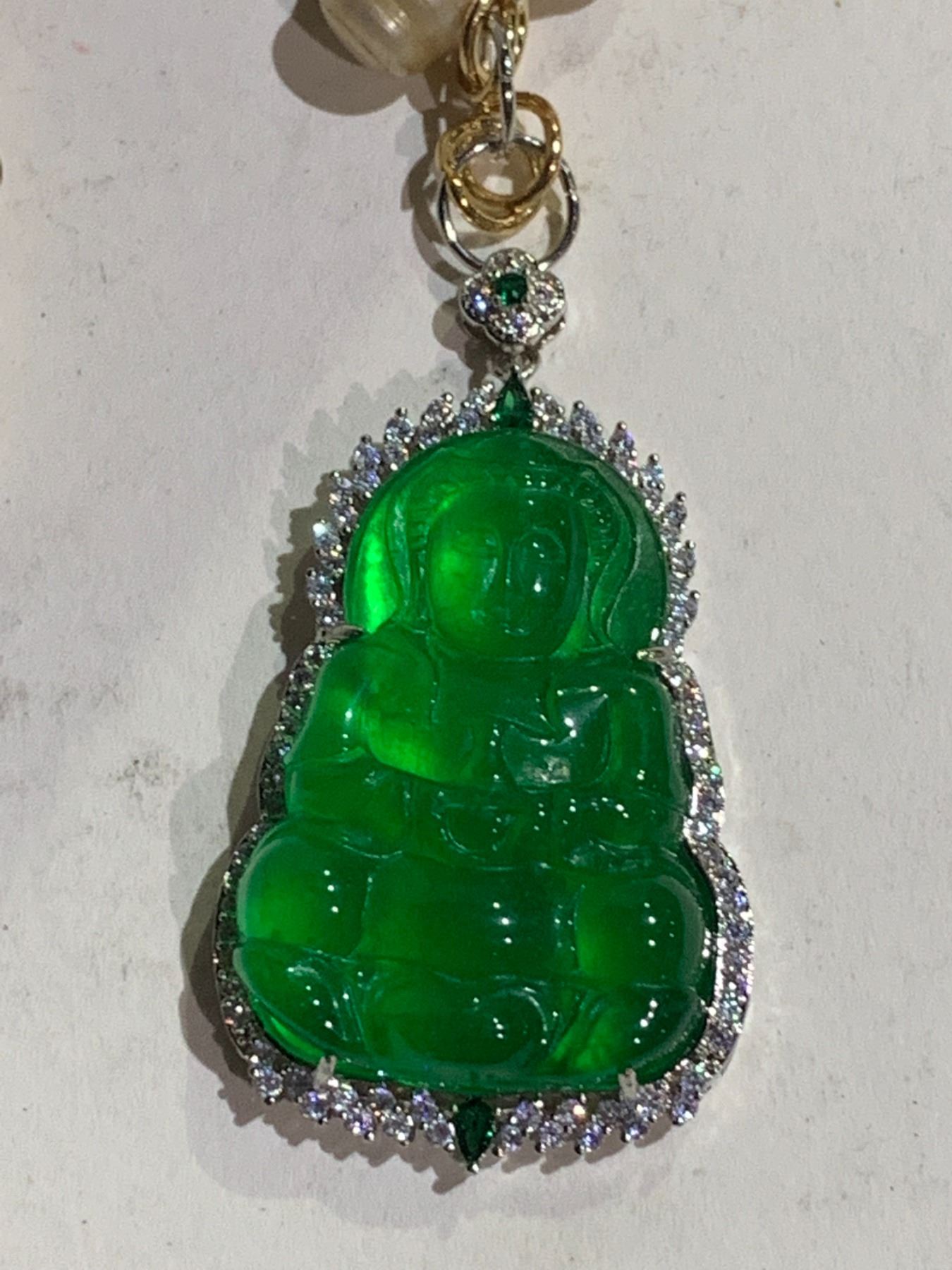 BURMESE SPINACH GREEN JADEITE BUDDHA PENDANT
