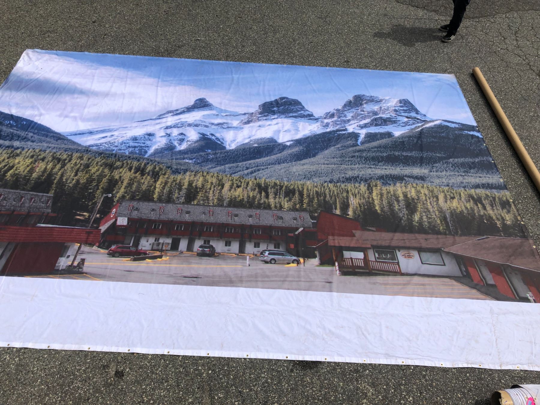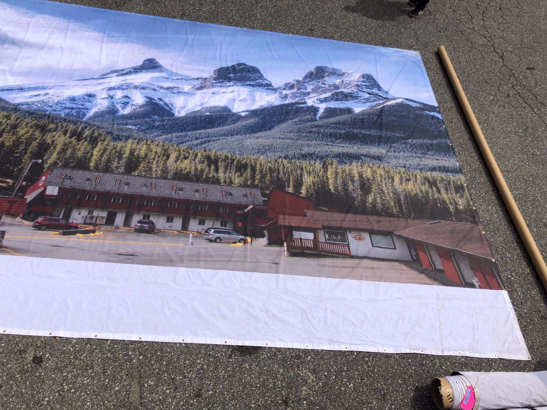Background scene screen for movie production - mountain motel scene - 19ft L x 14ft W