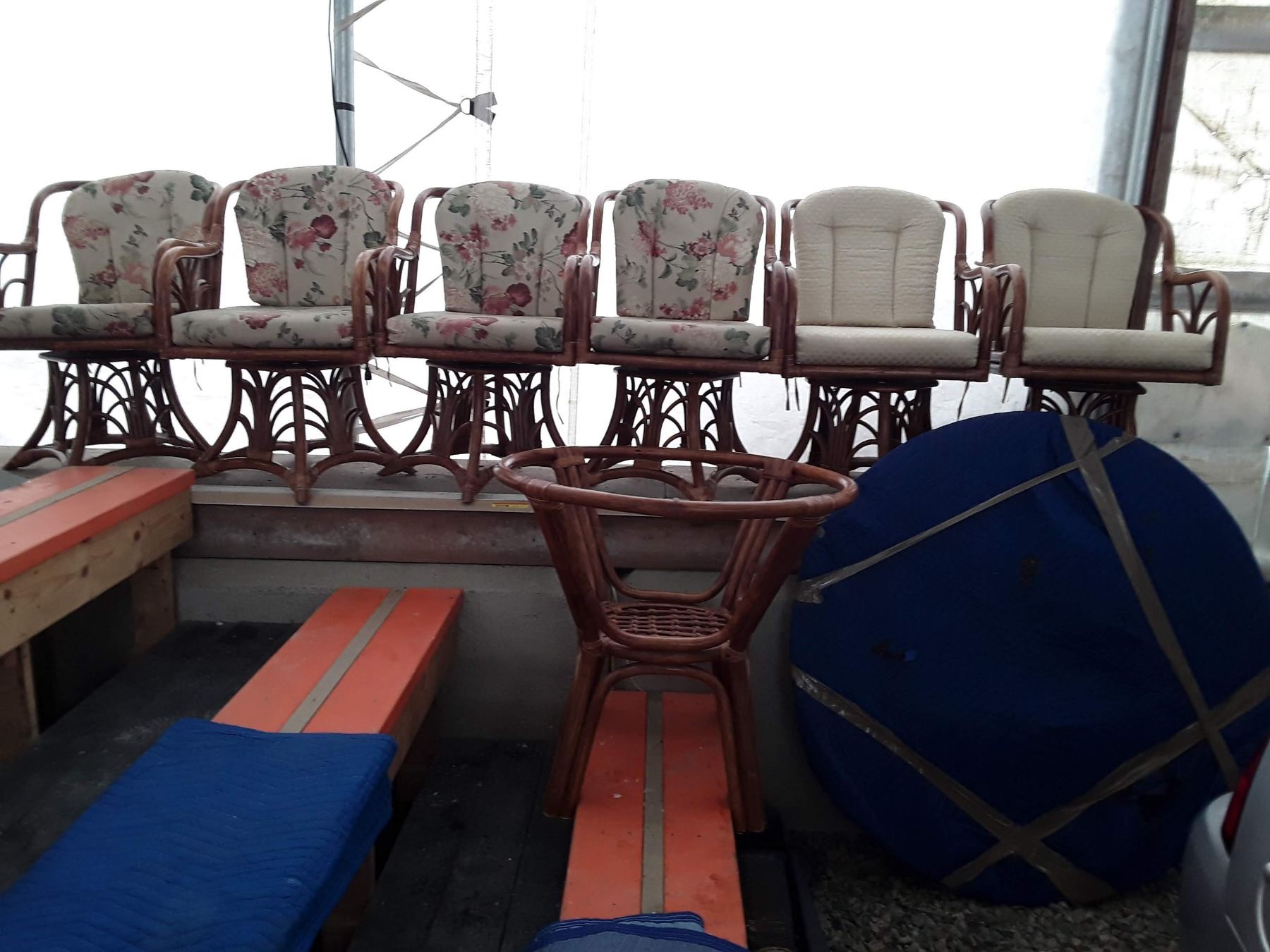 Bamboo Patio Set 6 Chairs + Table, - 17% Buyer Fee. Payment Processed through Live Auction World ( Visa or Master Card ) pick up Saturday, or Tuesday