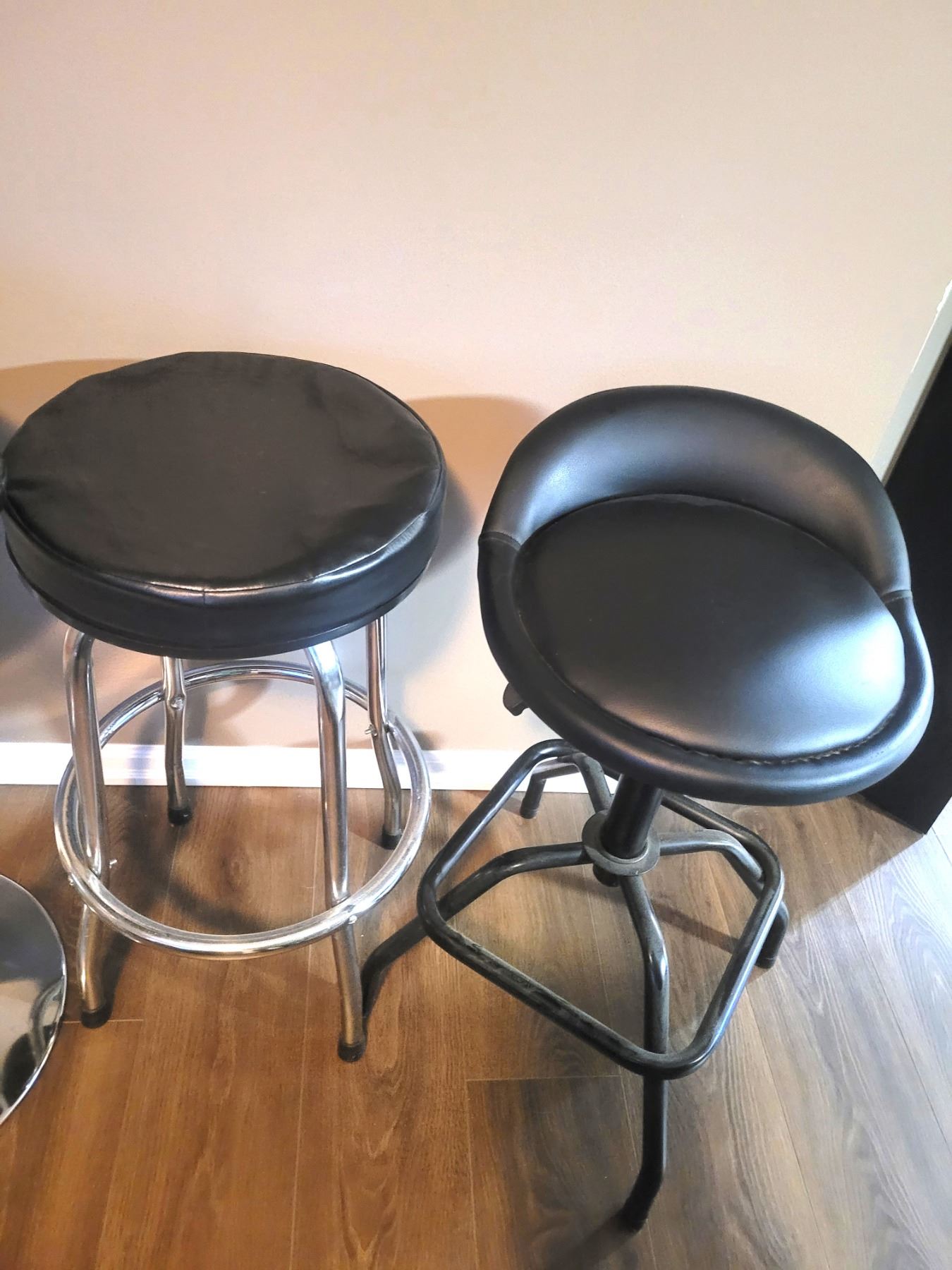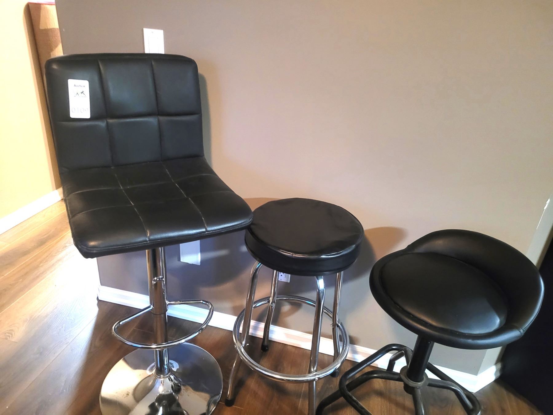 Three swivel bar stools, tallest 47". Pick up 9-10