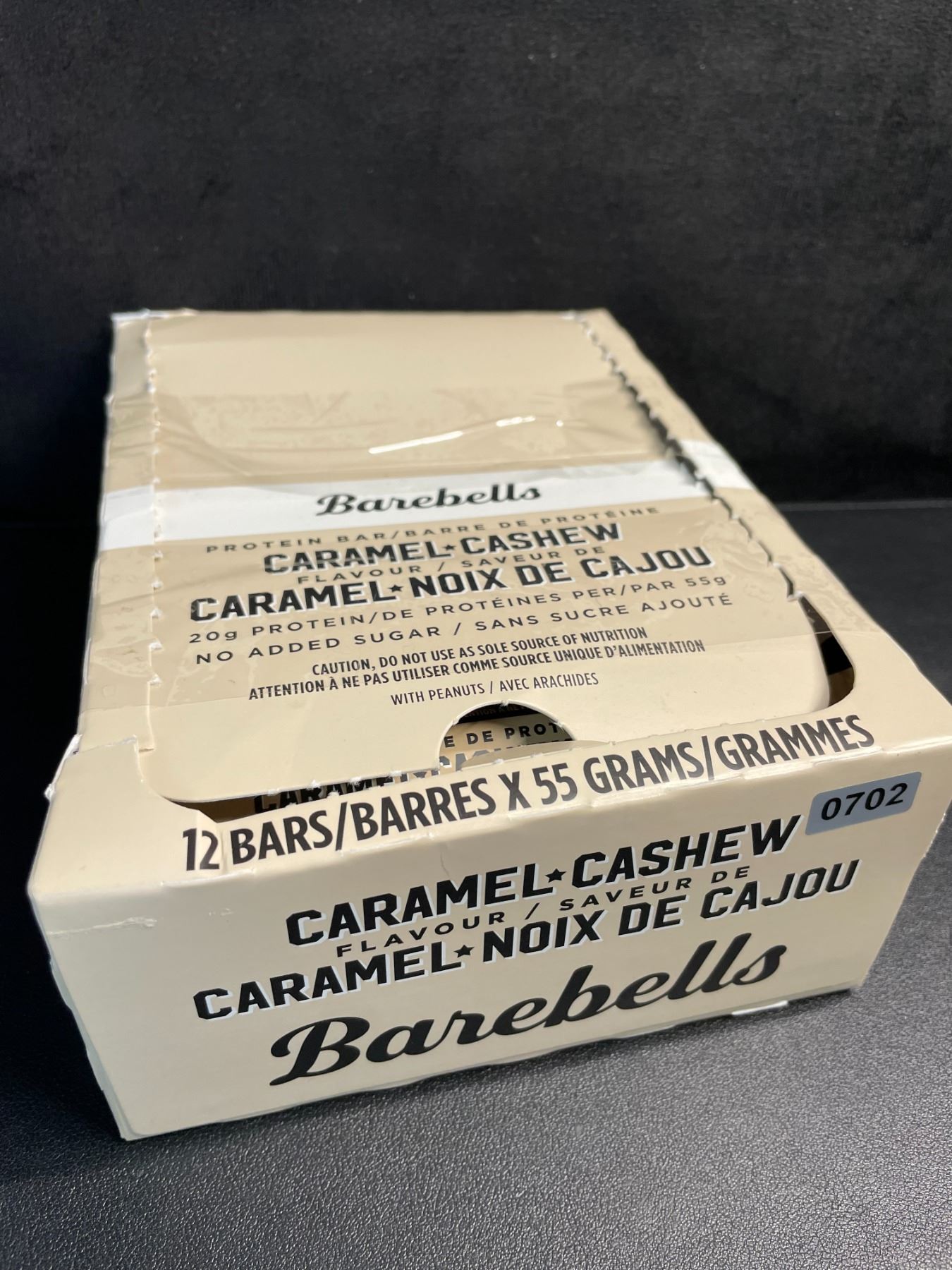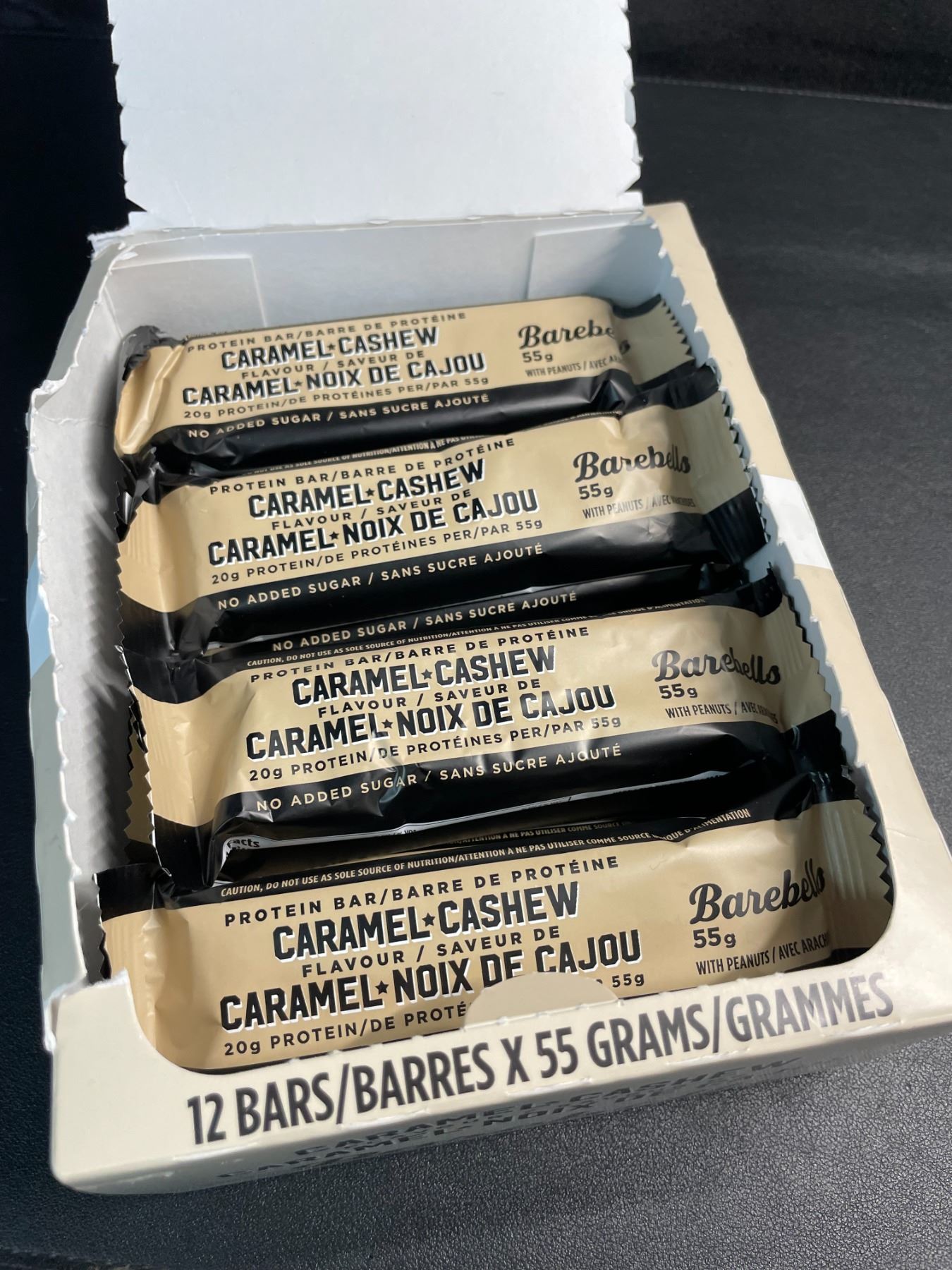 - Barebells High Protein and Low Carb Bar, 12 x 55g (1,94 oz) Low Sugar Snack Protein Bar with 20g Protein (Caramel Cashew)