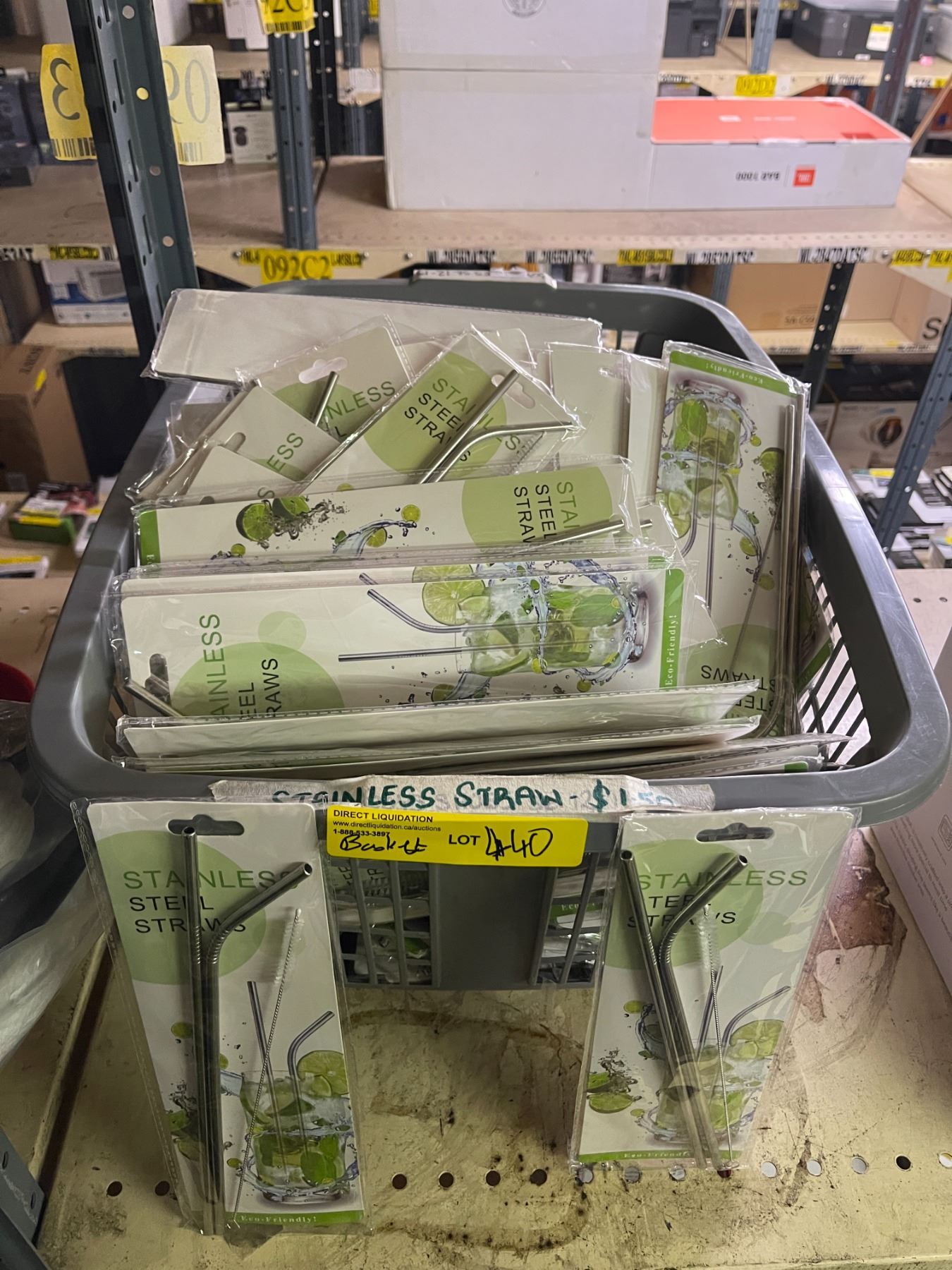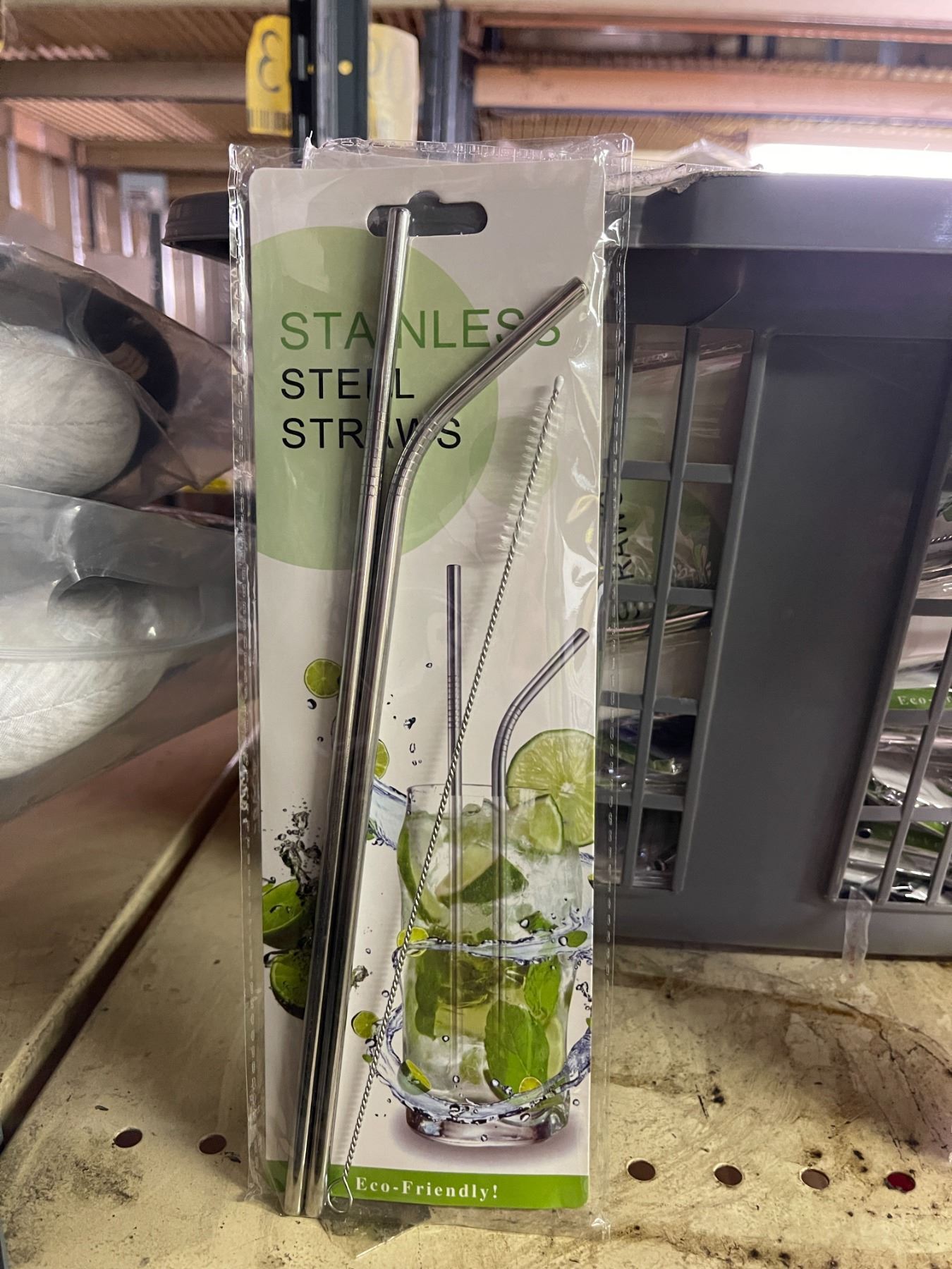 Basket full of new stainless steel eco-friendly straws (approx. 100pcs)